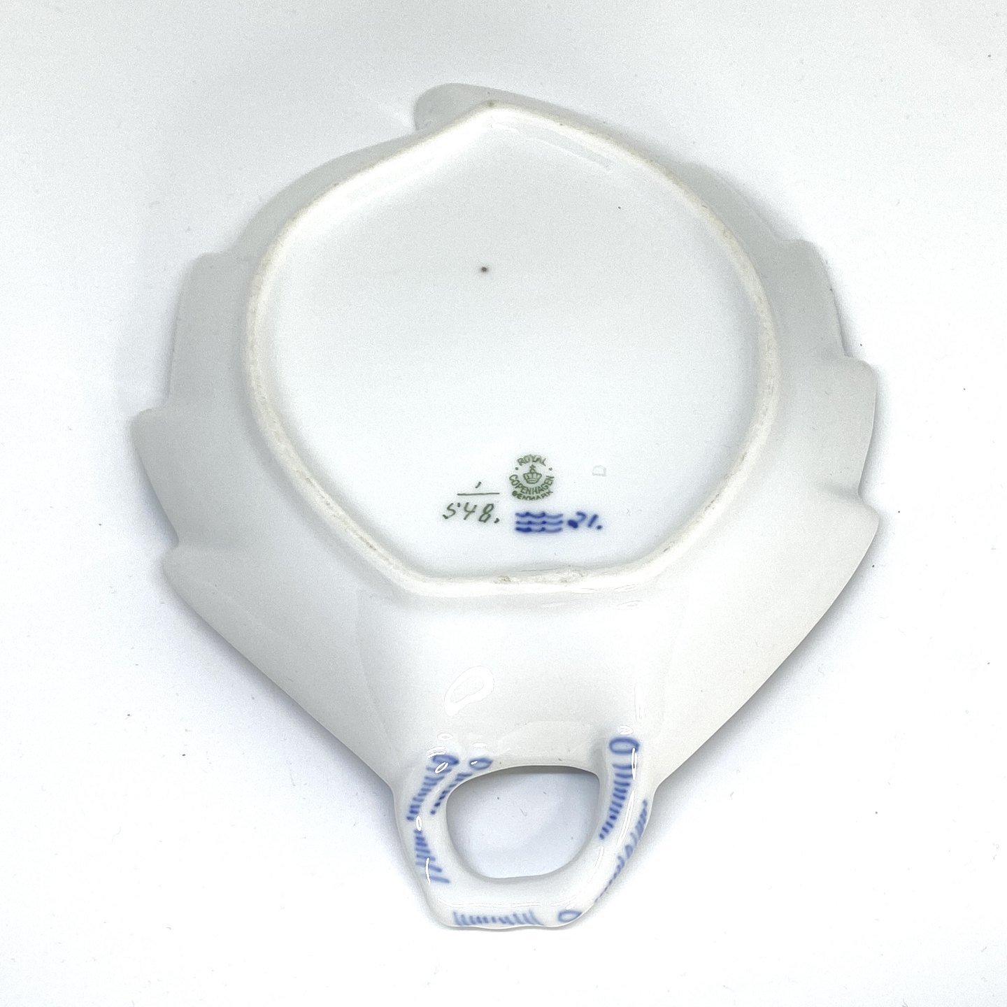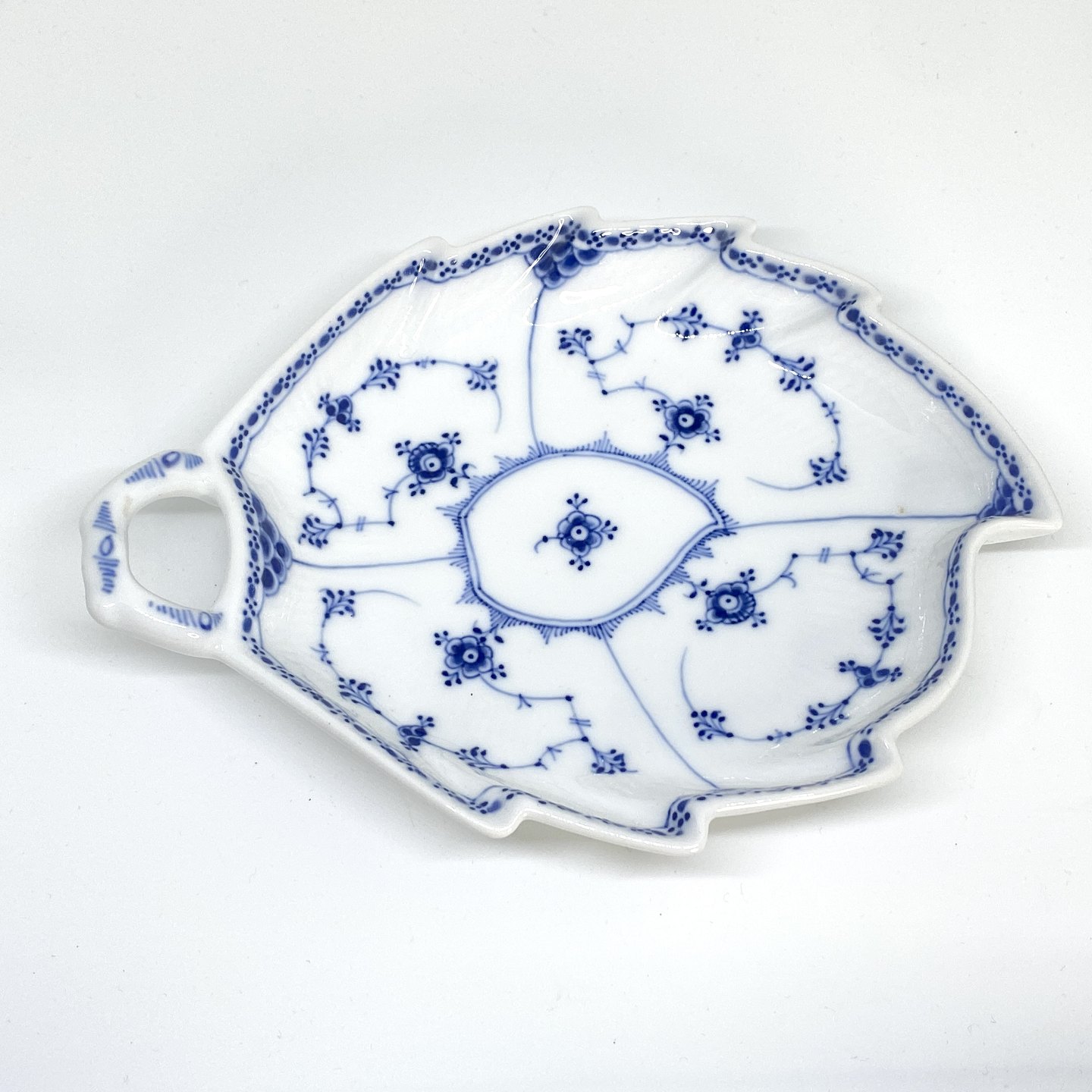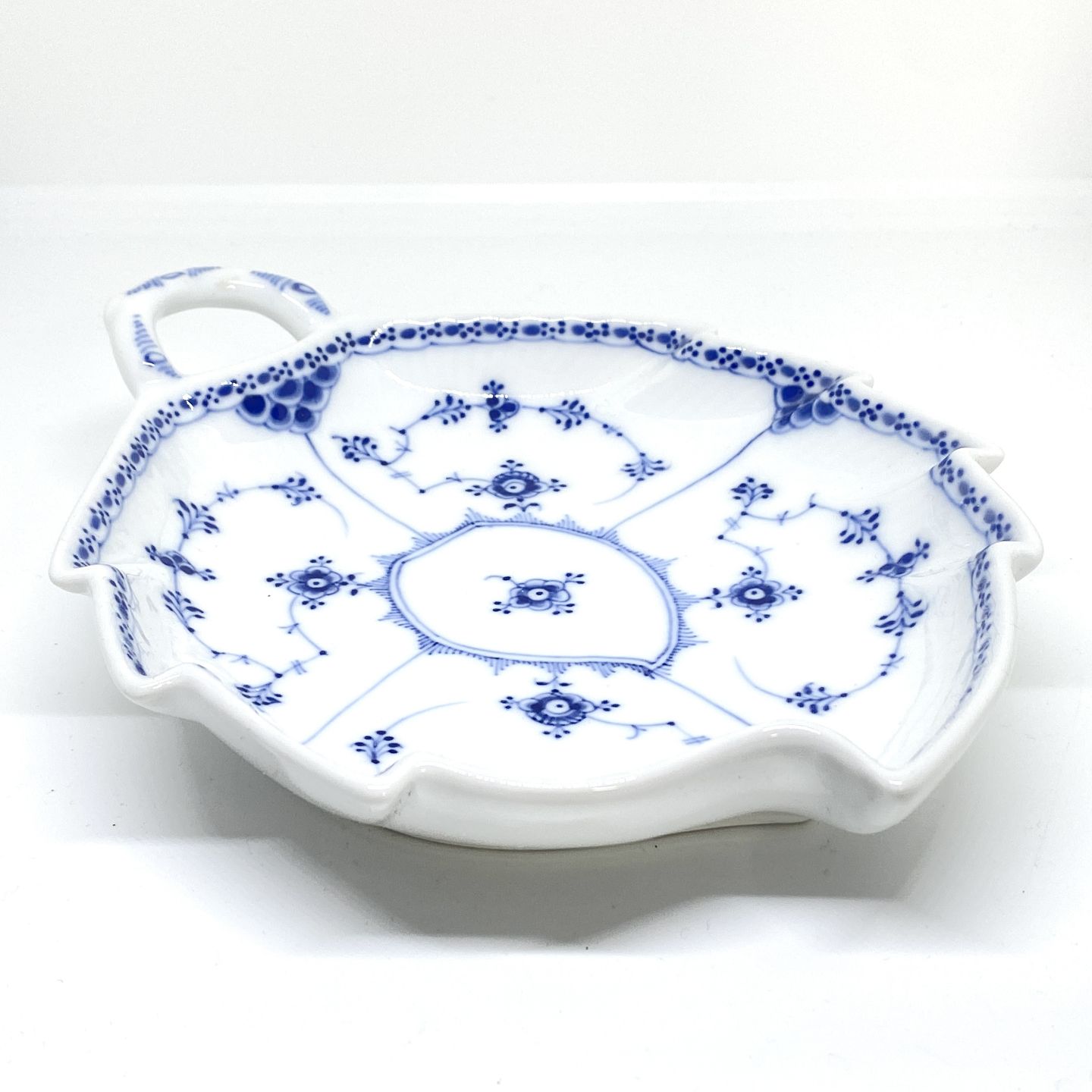 Royal Copenhagen/Kgl Blue Fluted half-lace leaf-shaped plate with fixed handle. Decoration number 1/548. 2nd grade. Dimensions: 22.5 x 17.5 cm.