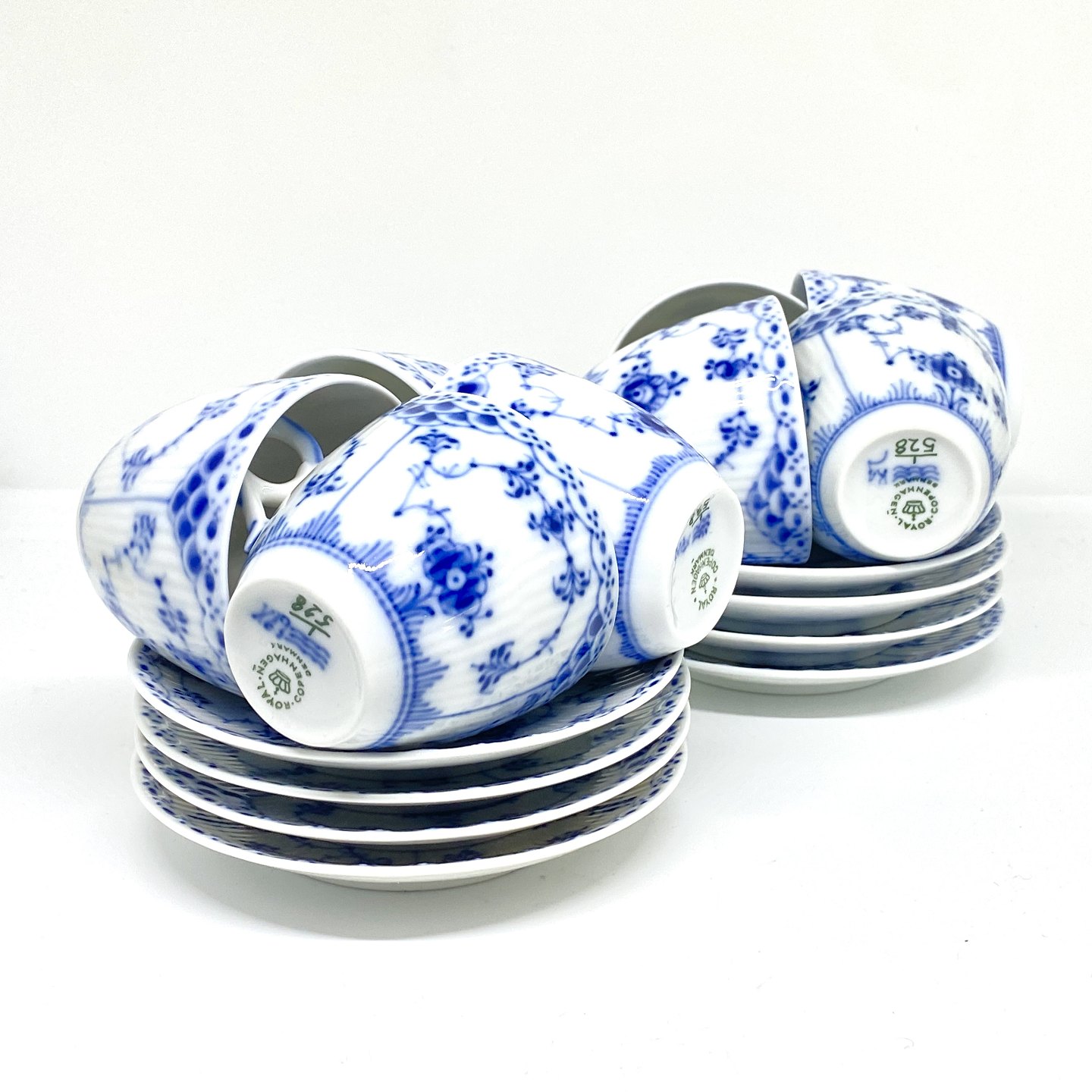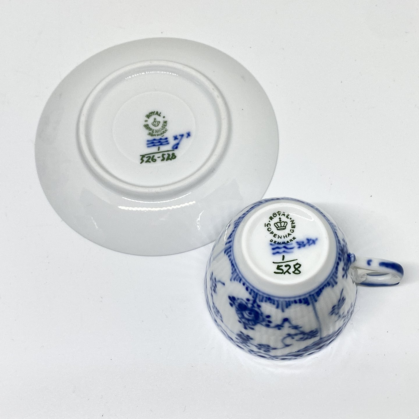 Royal Copenhagen/Kgl Blue Fluted half lace coffee cup and saucer. Decoration number cup 1/528. Decoration number saucer 1/528-526. 1 assortment.