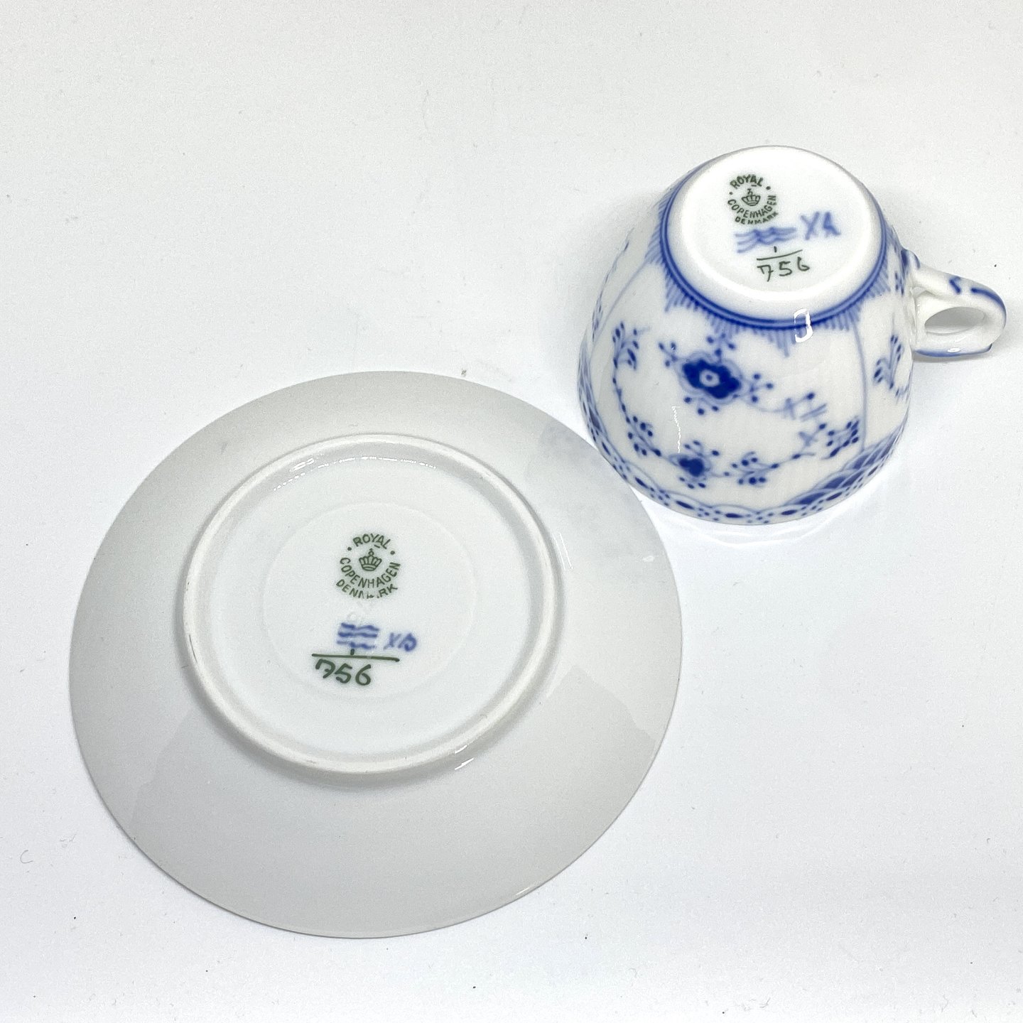 Royal Copenhagen/Kgl Blue Fluted half lace coffee cup and saucer. Decoration number cup 1/756. Decoration number saucer 1/756.3 sorting.