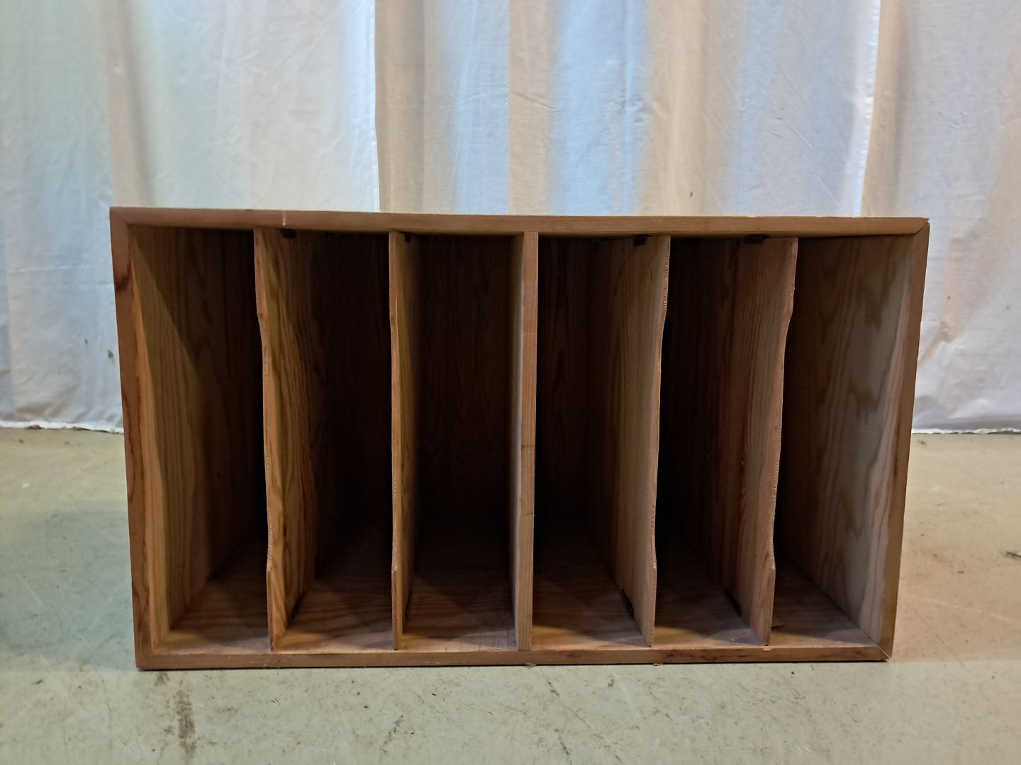 Lp-reolkasse i krydsfiner, fra 1990erne.