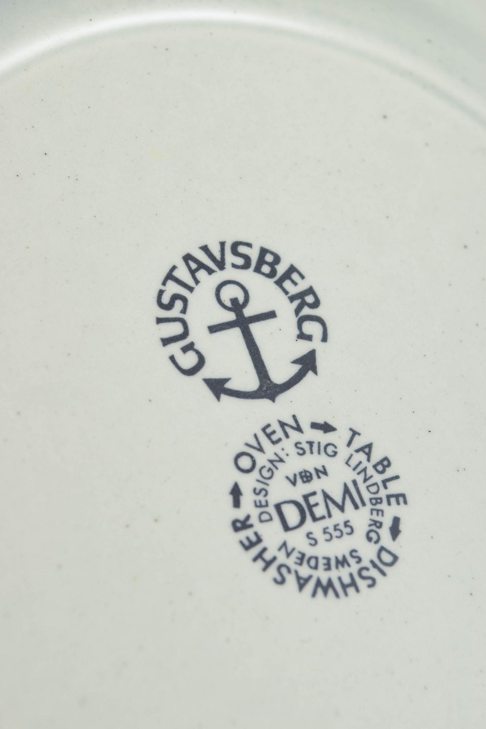 Stig Lindberg was one of Gustavsberg’s most influential designers and a key figure in Swedish modernist design. During the 1950s and 60s he developed simple tableware forms with clear geometric decoration, where function and visual identity were closely connected. The “Demi” model reflects this approach through its restrained form and subtle graphic pattern.