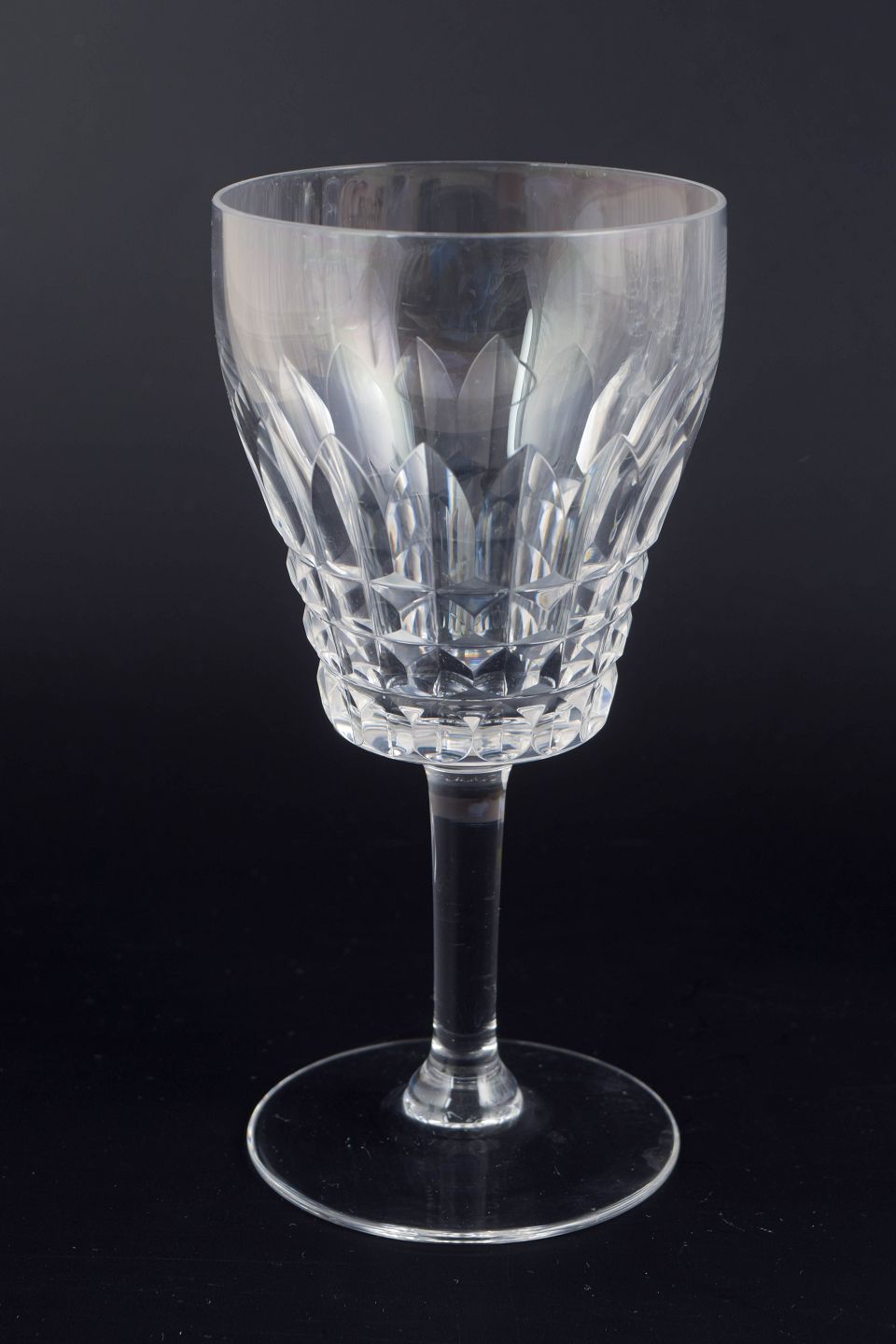 Mid-20th-century French crystal glassware is often defined by precise cutting and well-balanced proportions, using facets and flat planes to emphasise clarity and sparkle. Red wine glasses were a staple of formal table settings and home bars, and remain highly collectible today for their timeless elegance.