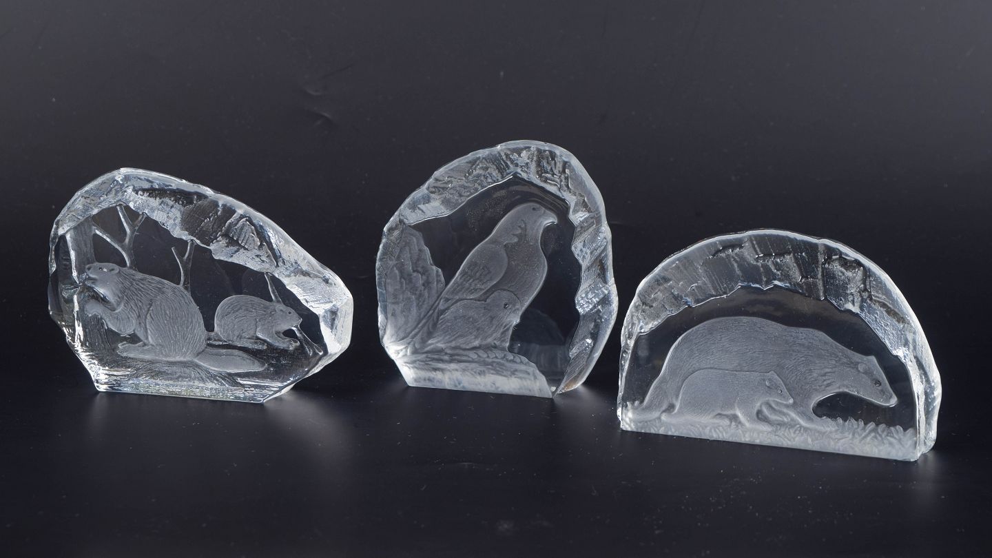 Paul Isling for Svenskt Glas, WWF art glass sculptures, set of 3.