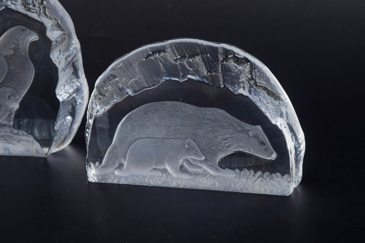 Sculptural art glass sculptures with engraved animal motifs, executed in clear glass and issued as a limited edition in collaboration with WWF.