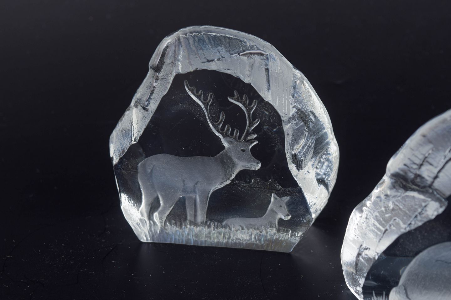 Sculptural glass figures with engraved animal motifs (moose, hare and wolf), executed in clear glass and issued as a limited edition in collaboration with WWF.