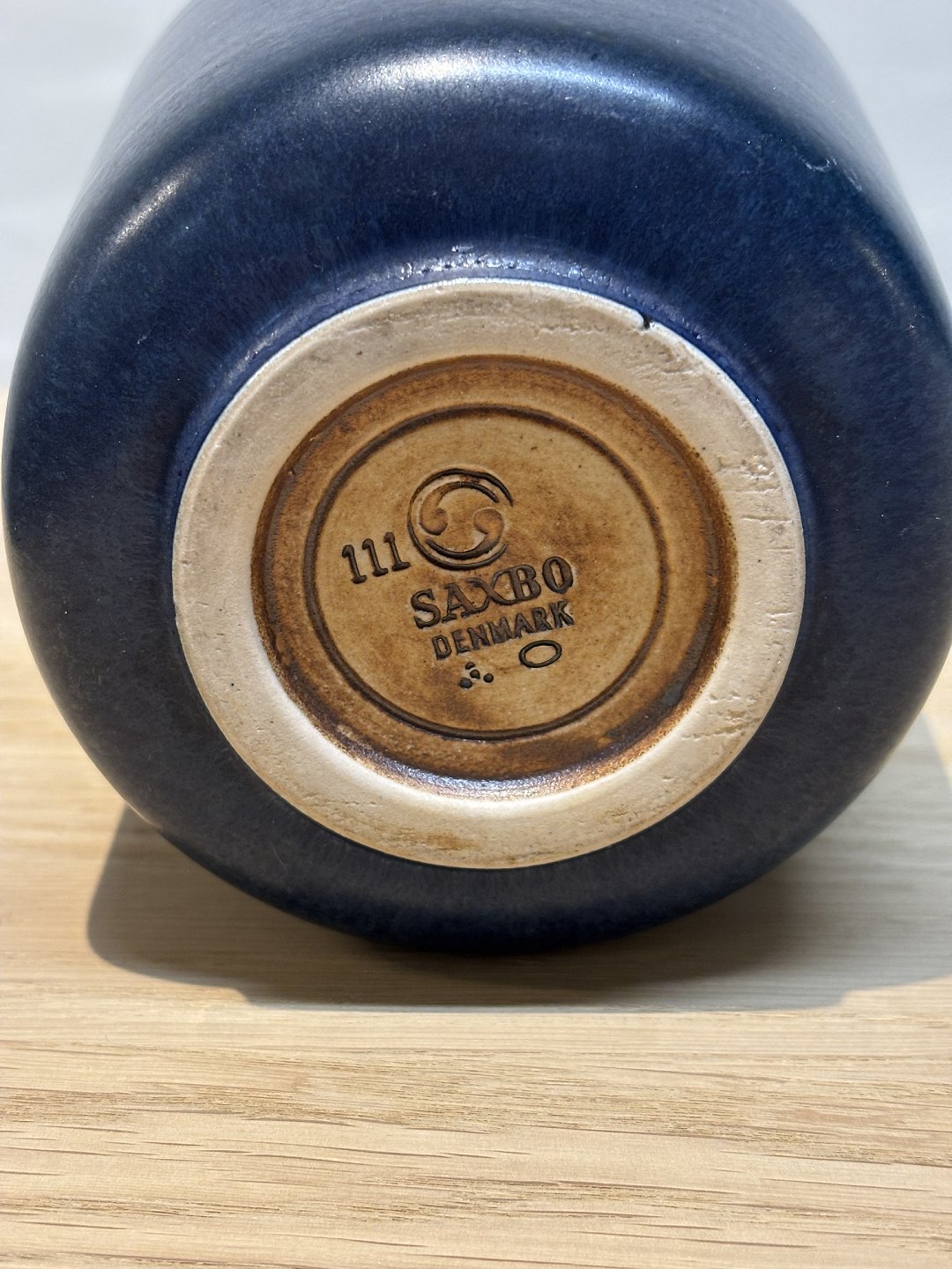 Saxbo krukke model 111 med blå glasur H 14 cm. kr 3000,-