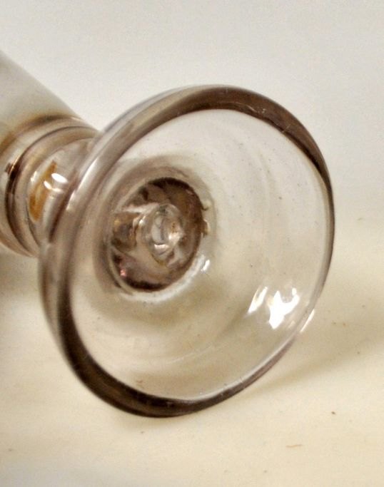 Masonic glass. Conradsminde, 1834 - 1857, Denmark. Clear glass with bent foot and hollow stem. Dia.: 5.6 cm. H.: 12.5 cm.