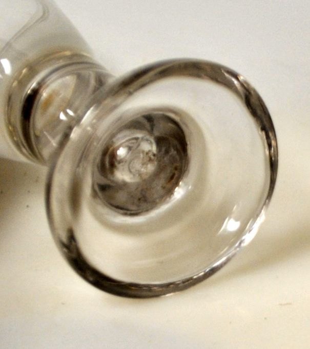 Masonic glass. Conradsminde, 1834 - 1857, Denmark. Clear glass with bent foot and hollow stem. Dia.: 5.6 cm. H.: 12.5 cm.