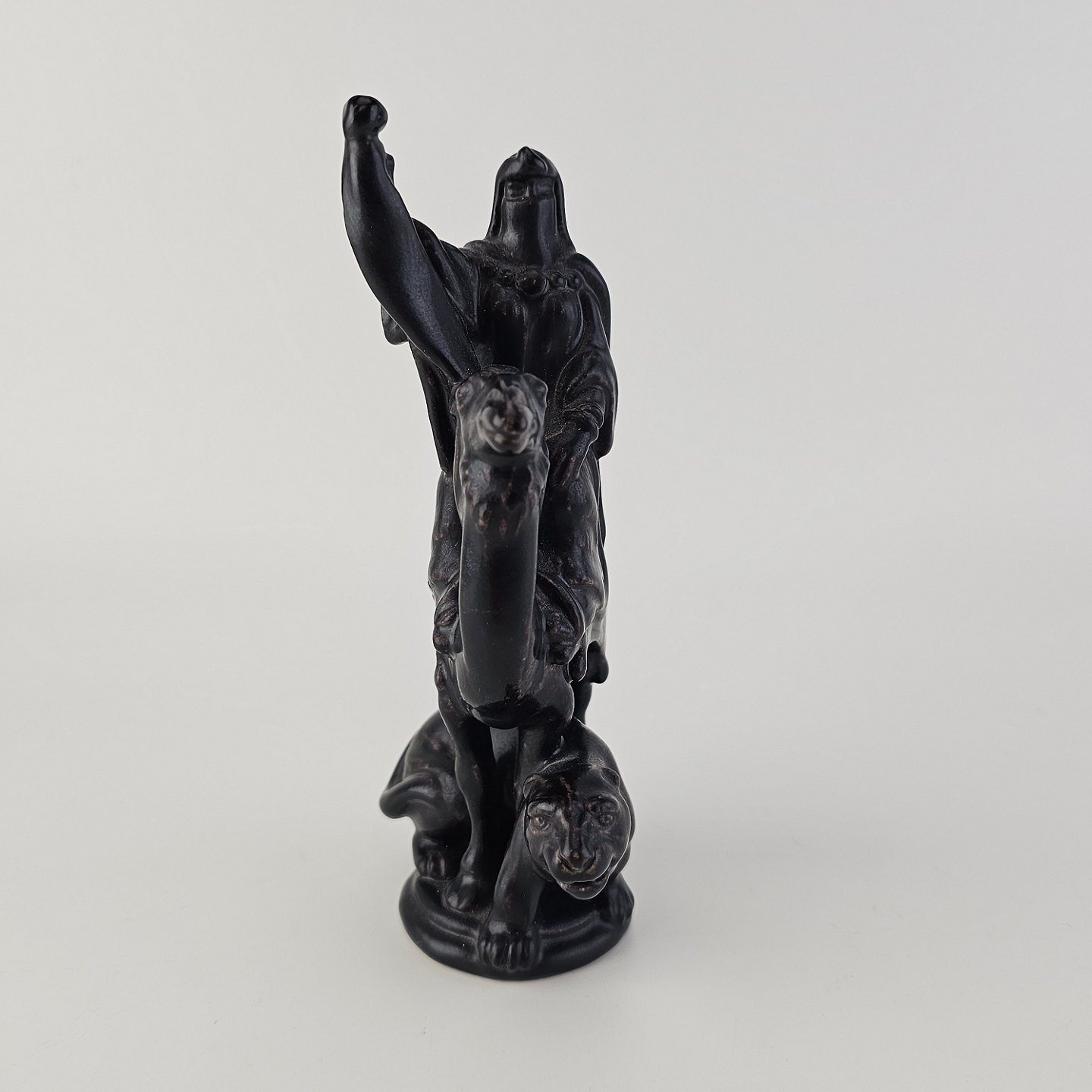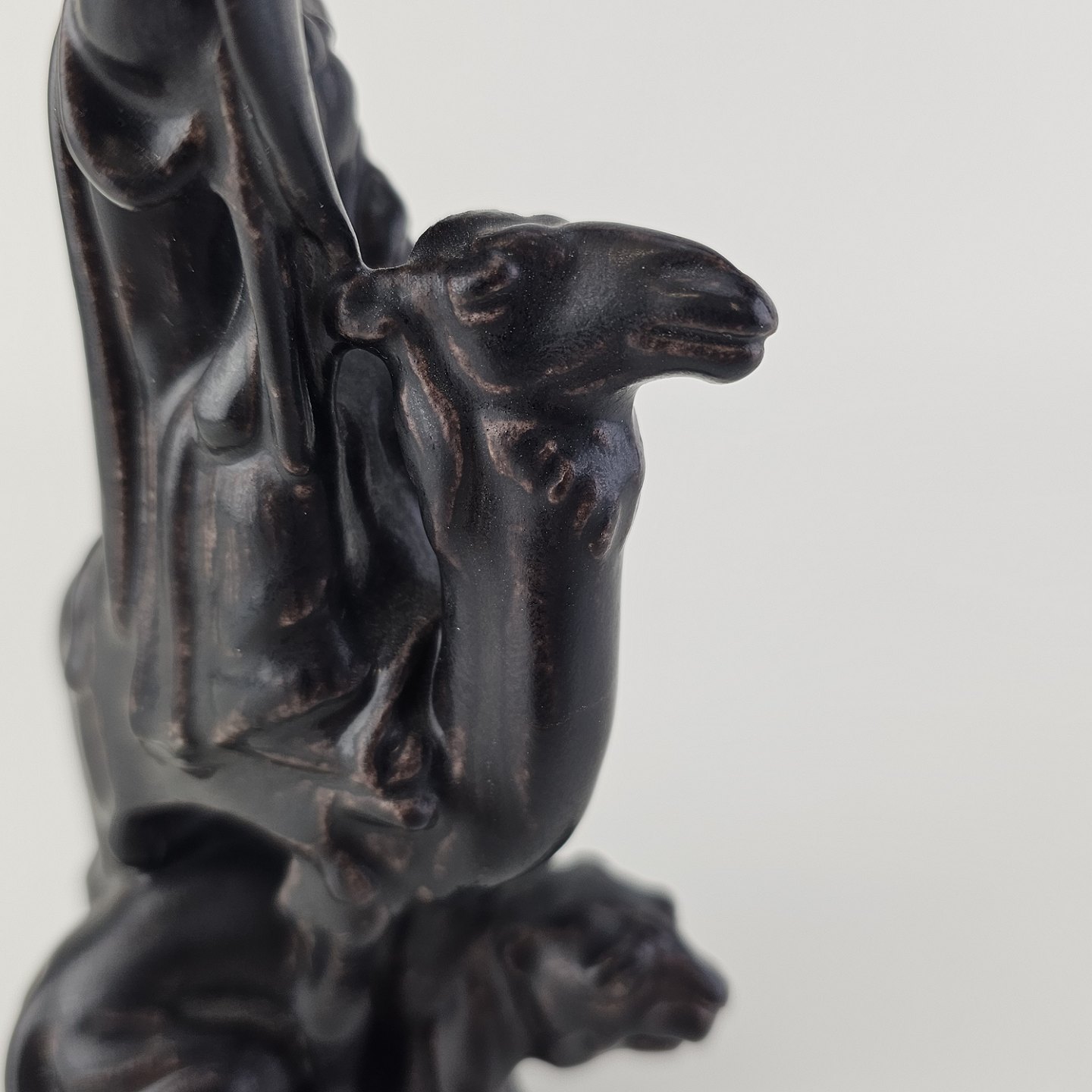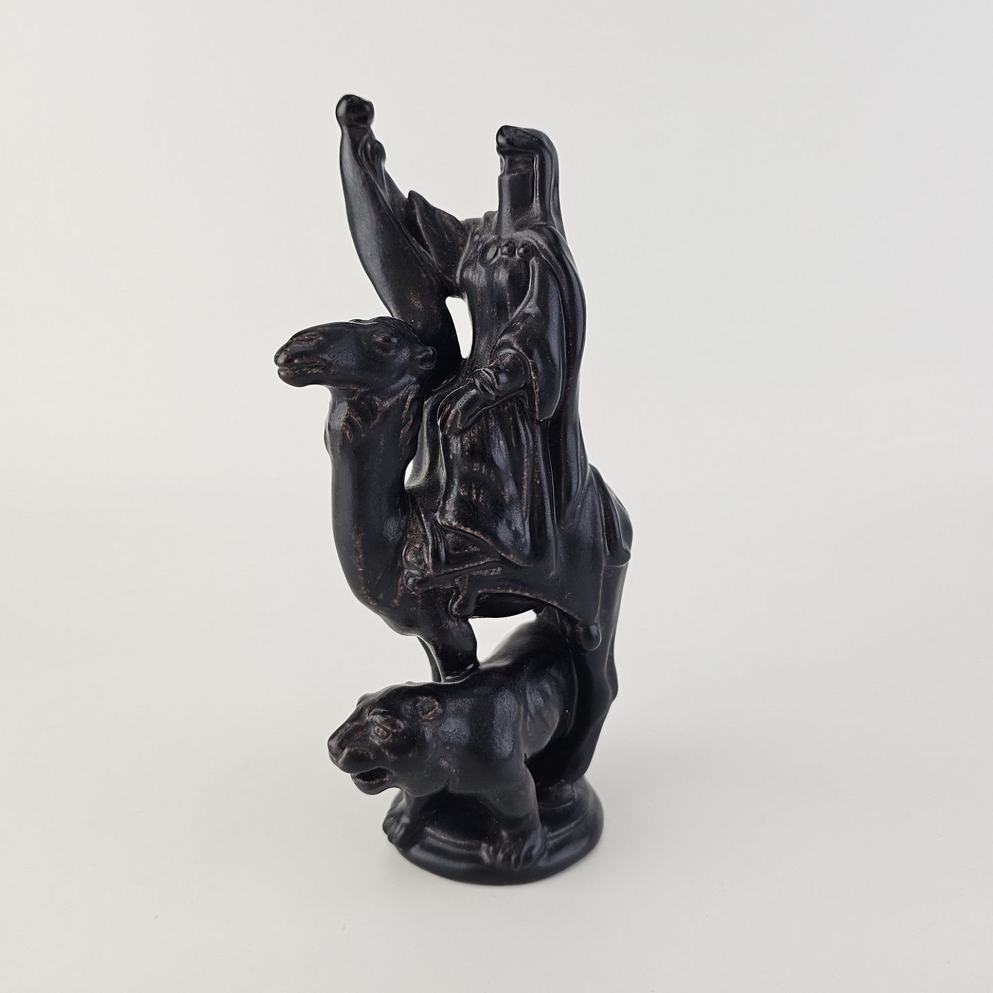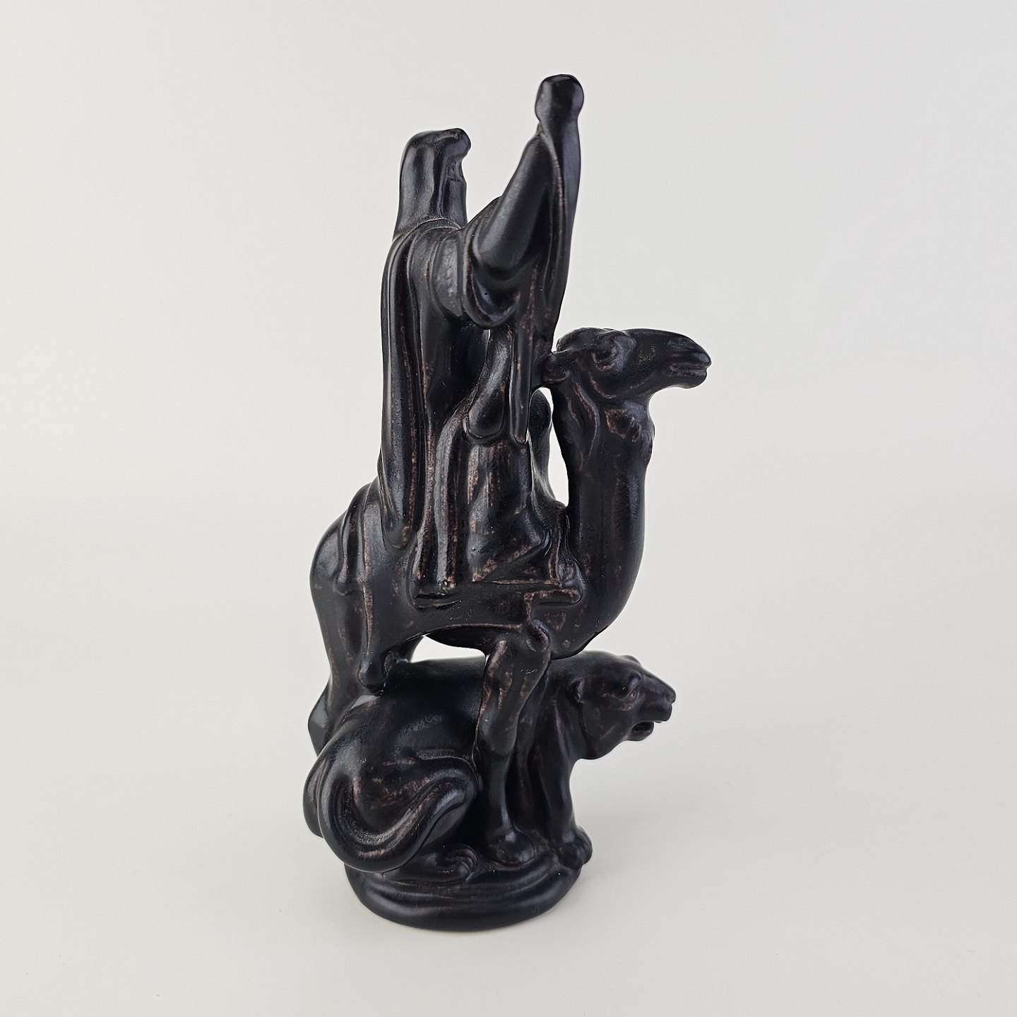 Text available in Danish: Meget sjælden figur i porcelæn fra et sæt skakbrikker med motiver af Richard Løvehjertes tempelriddere og Saladins saracenere. Denne figur er dronningen fra saracenerne og har motiv af en kvinde iklædt slør på en kamel