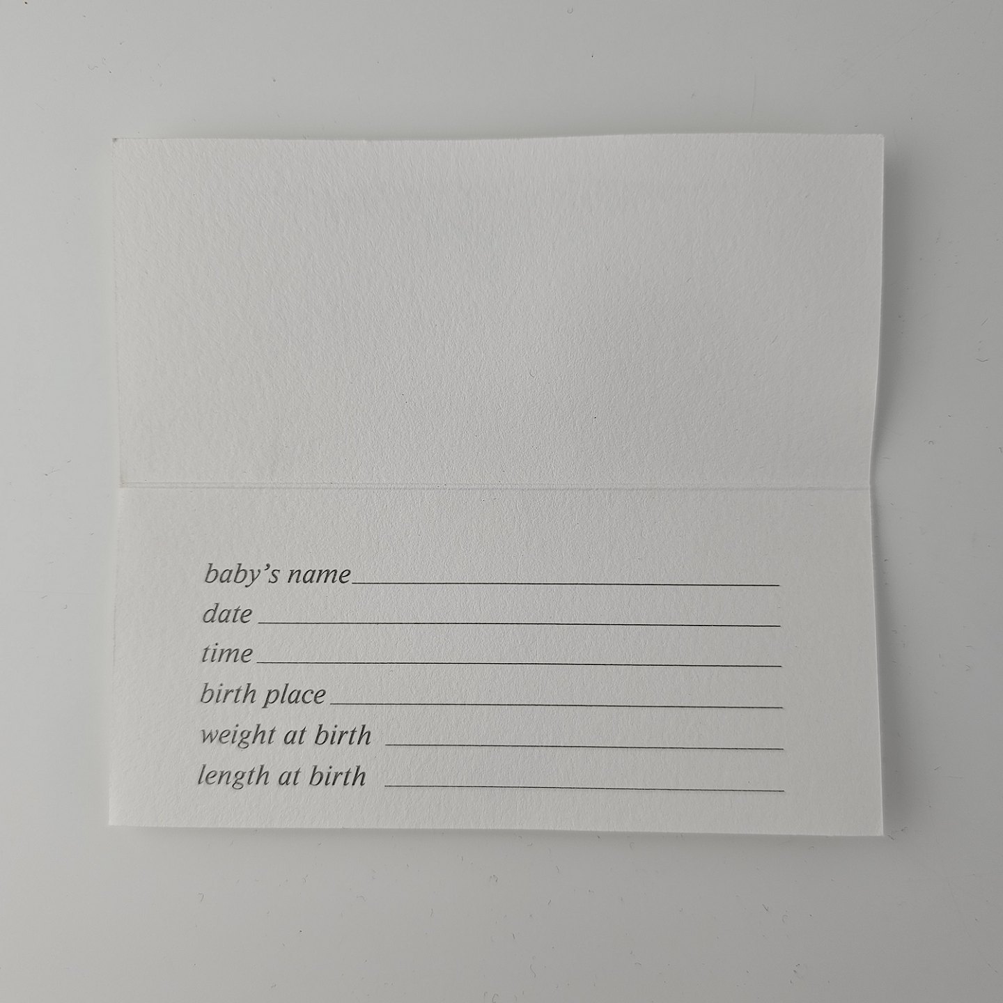 Servietring i sterling sølv med tilhørende æske og kort, Baby's Personal Details