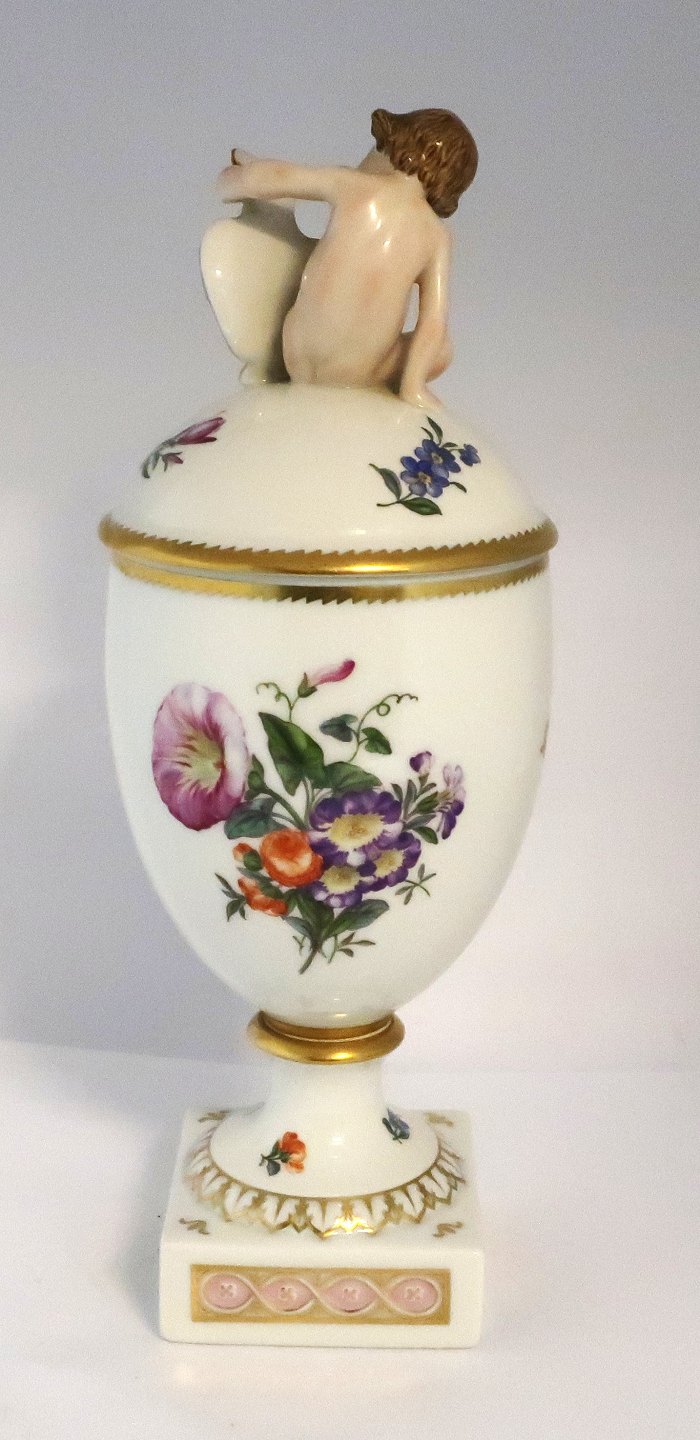 Royal Copenhagen. Saxon flower. Cup with lid with putti on the lid. Model 1754. Height 30 cm (1 quality)