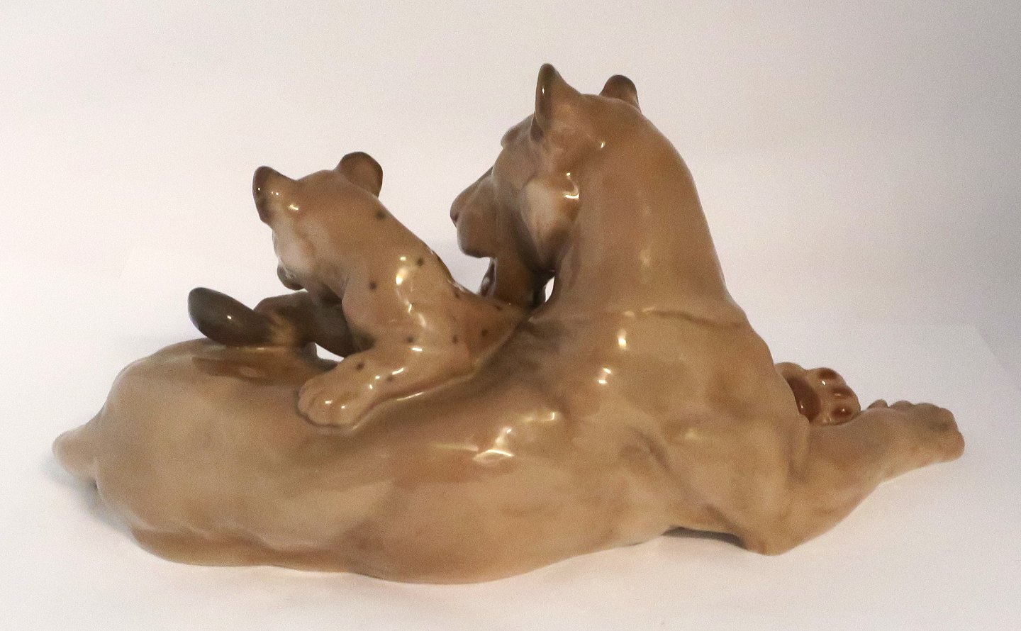 Bing & Grondahl. Lion with lion cub. Model 2268. Length 30 cm. (1 quality)