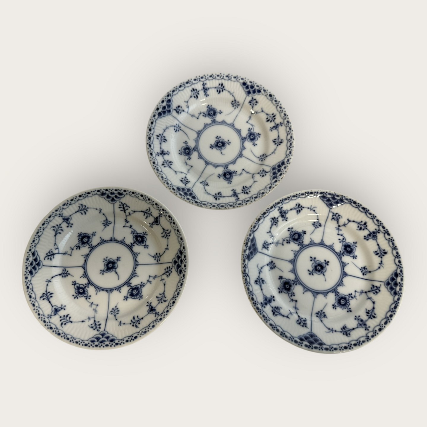 Royal Copenhagen, Blue Fluted, Half Lace, Cake Plate #1/575, 16cm in diameter, 3rd grade / employee grade *A few black dots under the glaze along the edge, otherwise in good condition*