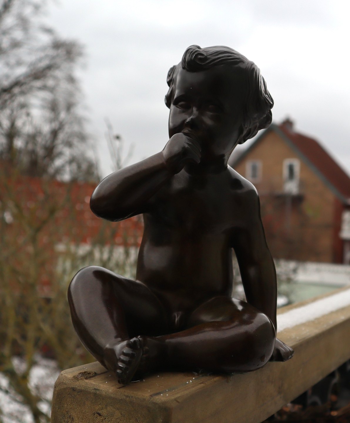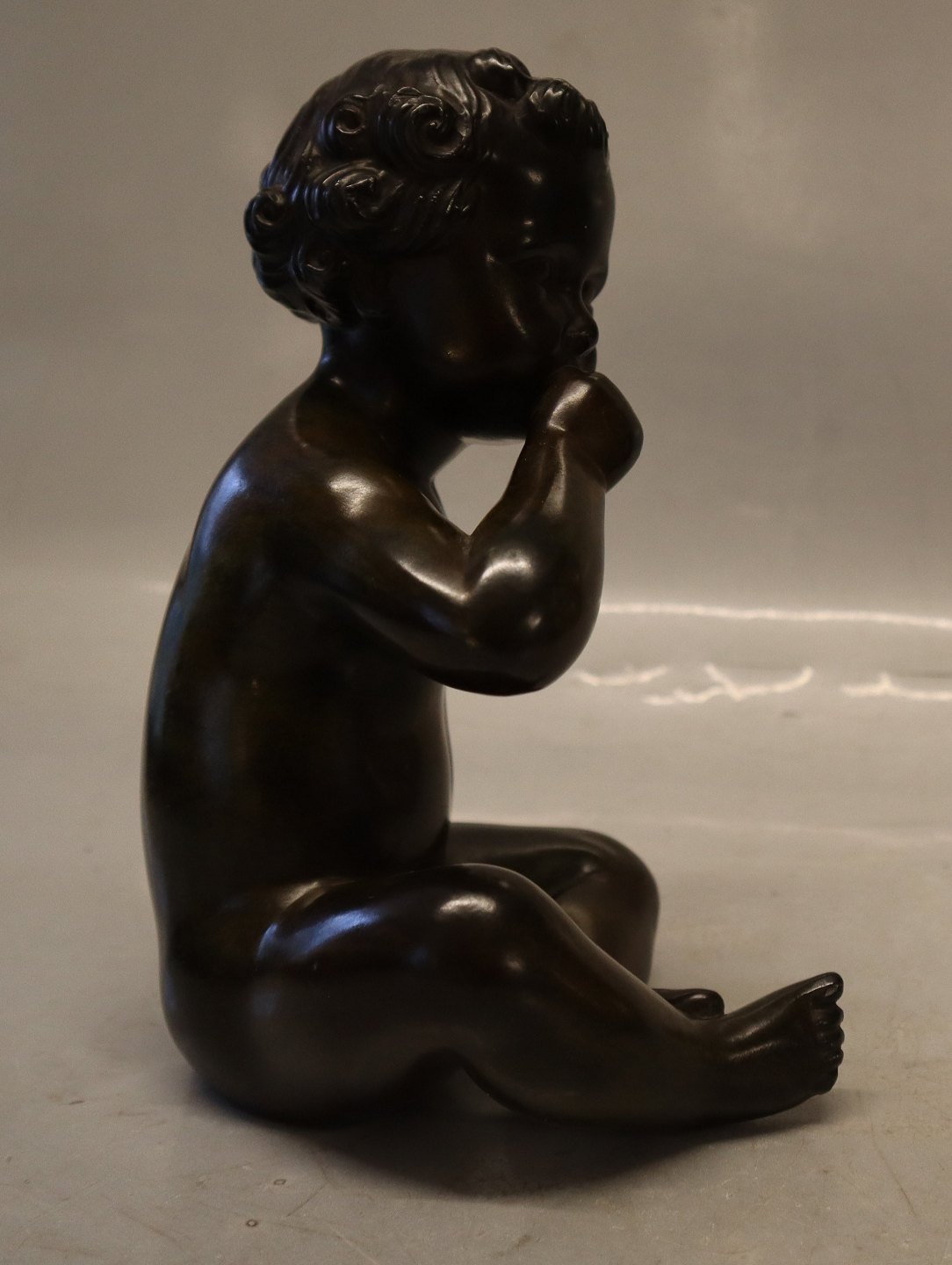 Just A Disko D 2323 Boy sitting sucking thump 19.5 cm Bronzed sculpture