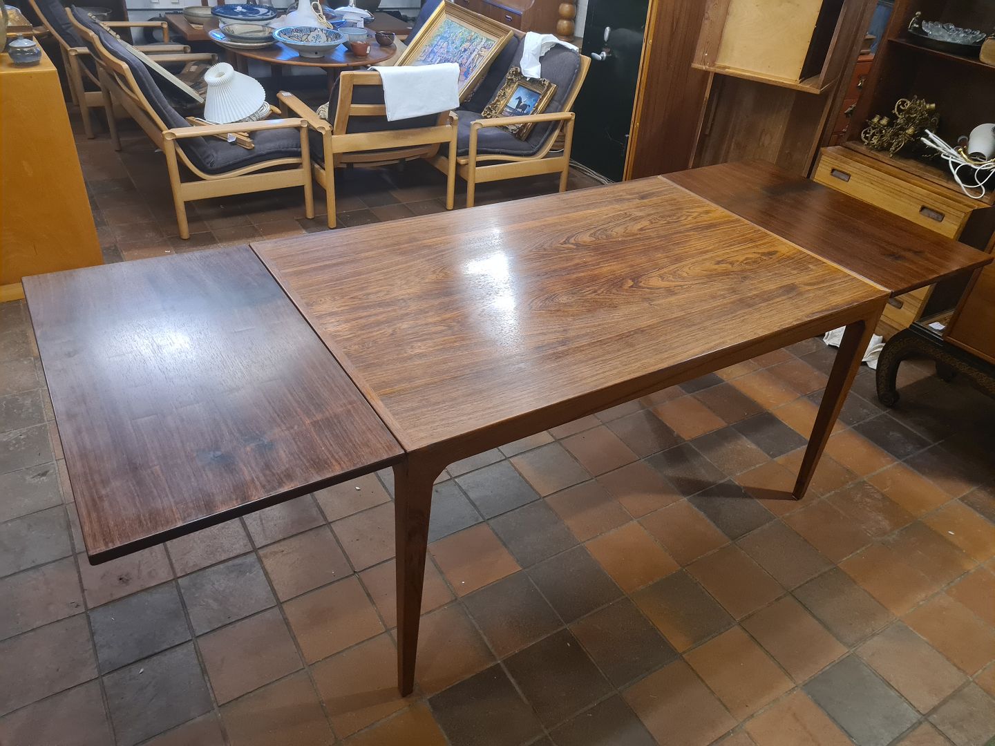 Text available in Danish: Kai Kristiansen spisebord m. 2 tillægsplader.