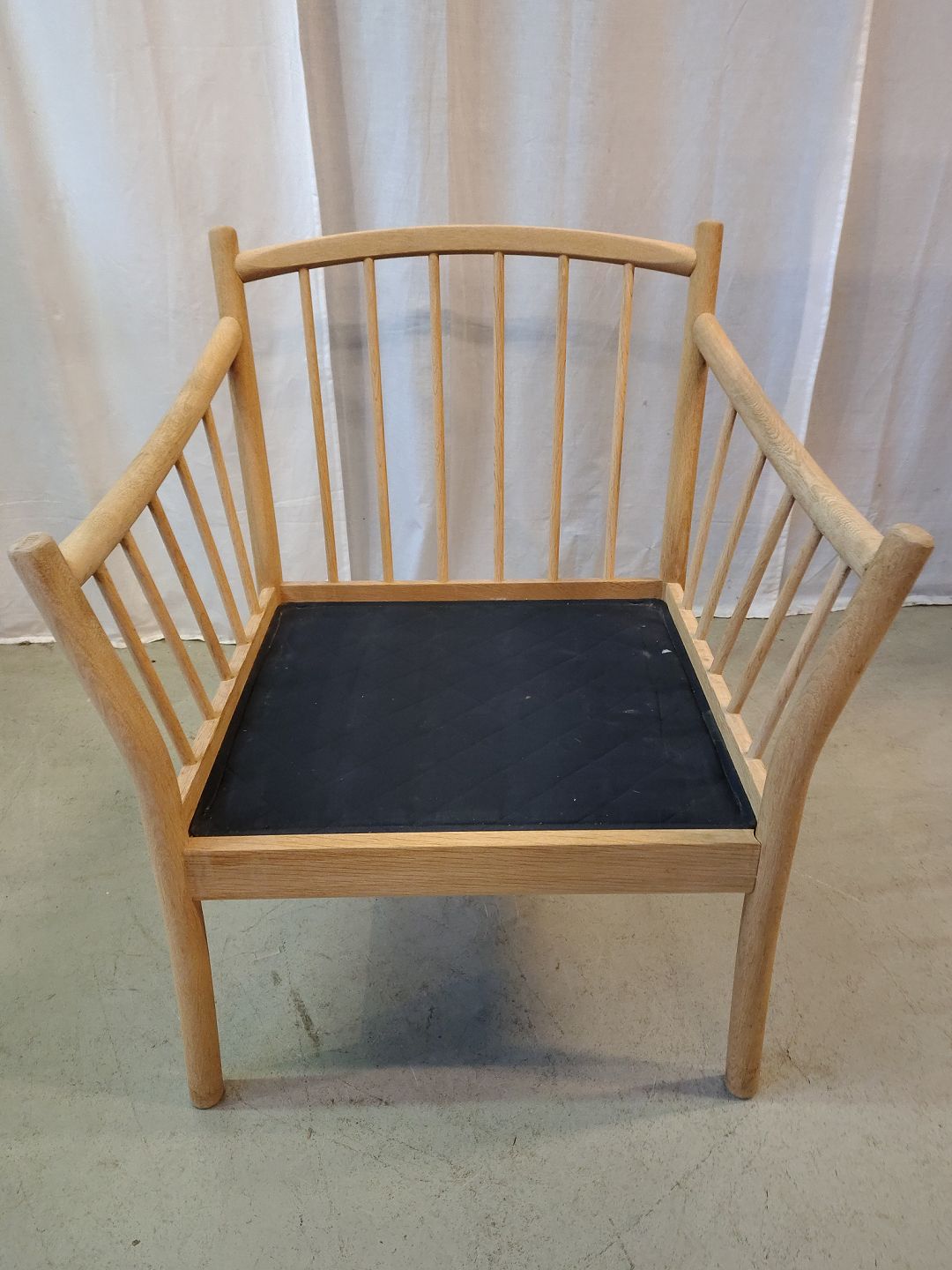 Lænestol i massivt egetræ med kunst rugskind, fra 2000erne.