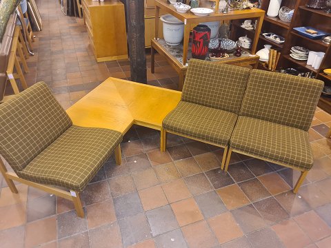 Text available in Danish: Ole Gjerløv Knudsen/ Torben Lind sæt af 3 Moduline lounge stole udført i eg og betrukket med uldstof. Fremstillet hos France & Søn ca. 1970'erne.