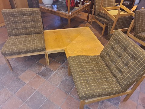 Text available in Danish: Ole Gjerløv Knudsen/ Torben Lind et par Moduline lounge stole udført i eg og betrukket med dybhæftet uldstof. Fremstillet hos France & Søn ca. 1970'erne.