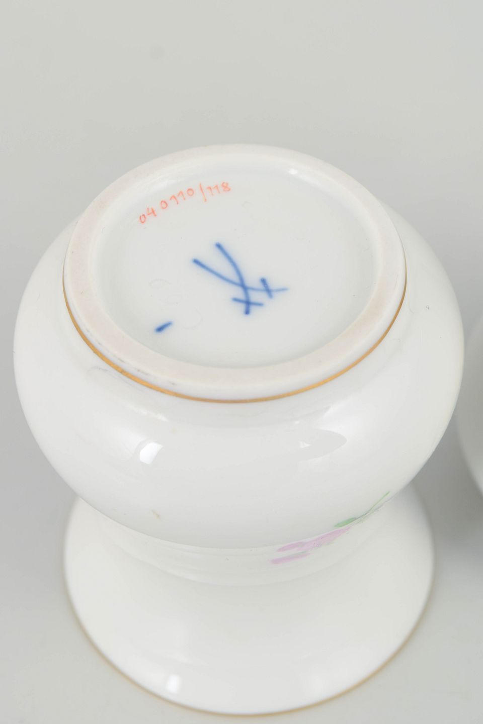 Founded in 1710, Meissen is Europe’s oldest porcelain manufactory. The crossed swords mark, introduced in the 1720s, is one of the most recognisable porcelain marks worldwide and signifies authenticity and quality. During the interwar years and the 1940s, Meissen continued producing classical floral decorations in miniature formats, executed with high technical skill and reflecting the manufactory’s long-standing tradition of hand-painted porcelain.