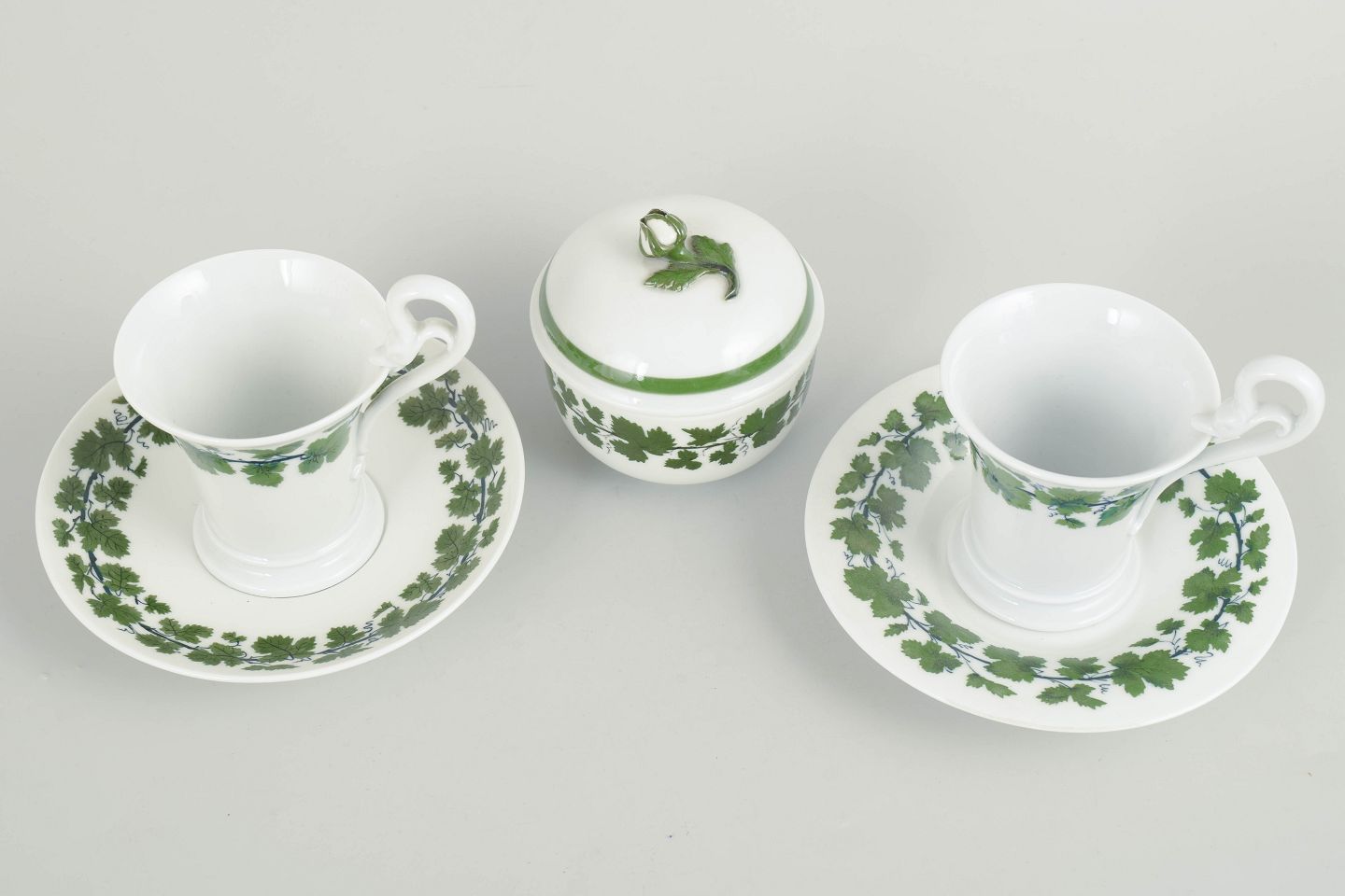 Meissen, Vine Leaves, coffee cups with saucers and sugar bowl.