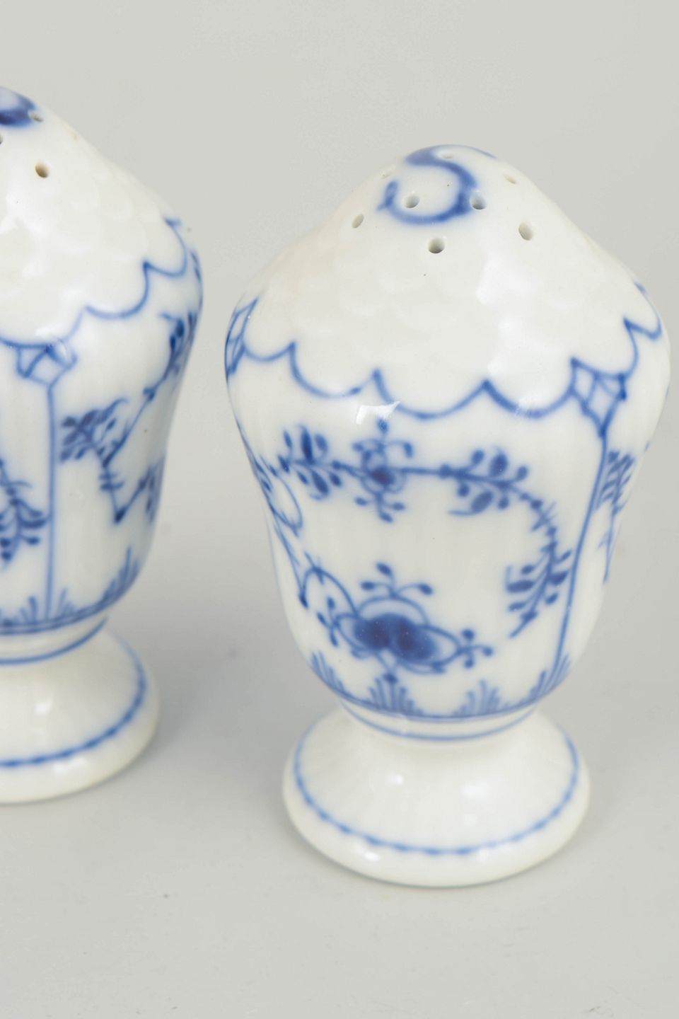 Blue Fluted Plain is Royal Copenhagen’s oldest pattern, first introduced in 1775. During the 1920s, the pattern was widely used across complete table settings, including smaller utility pieces such as salt and pepper shakers. These items demonstrate the same freehand-painted craftsmanship and balanced proportions that define the series and contribute to its lasting appeal within Danish porcelain history.