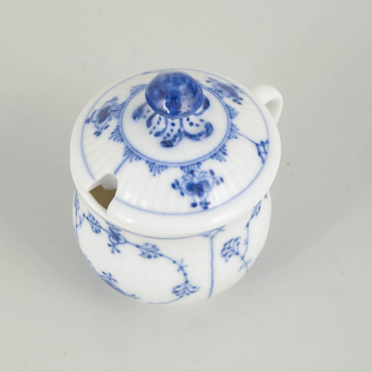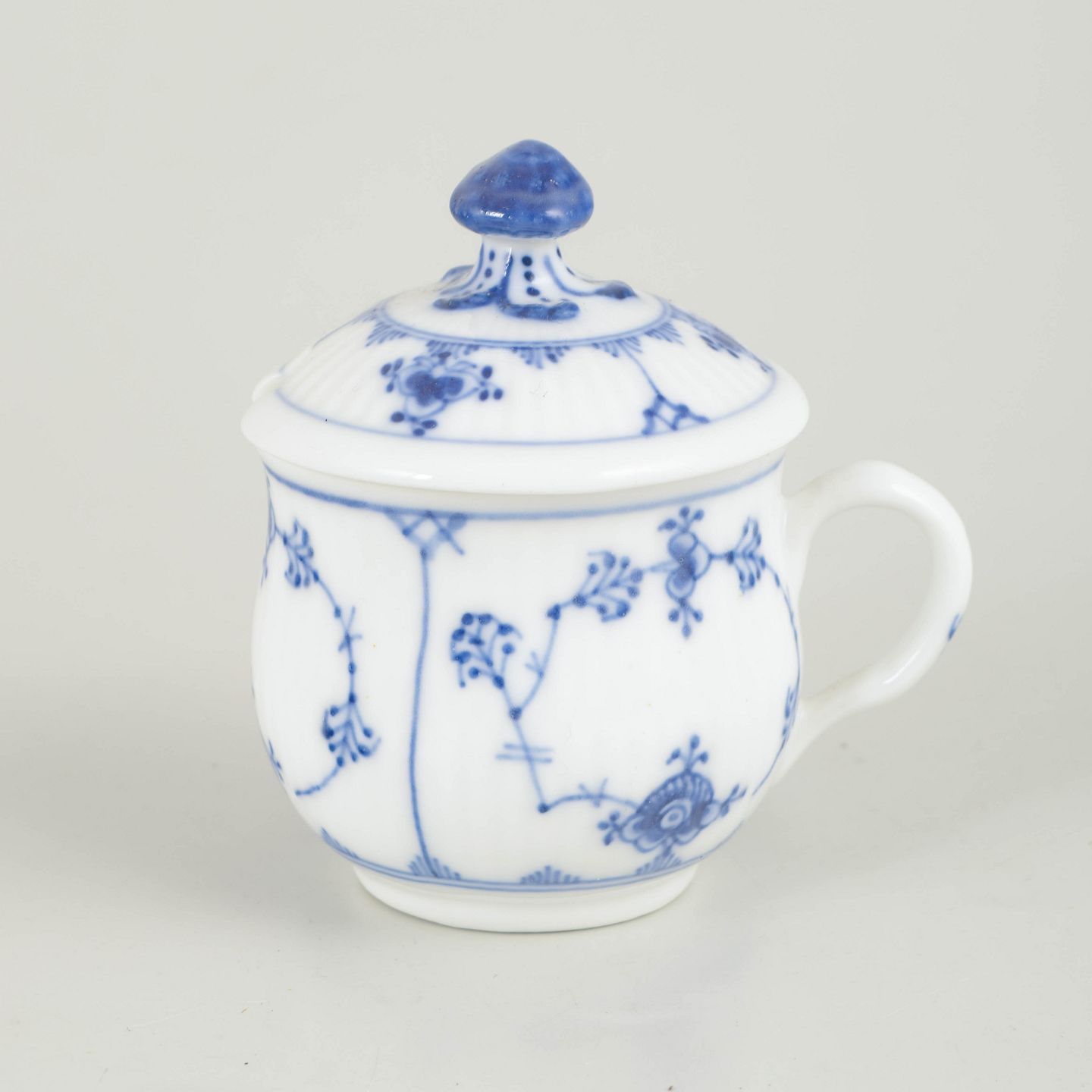 Royal Copenhagen, Blue Fluted Plain cream cup with lid.