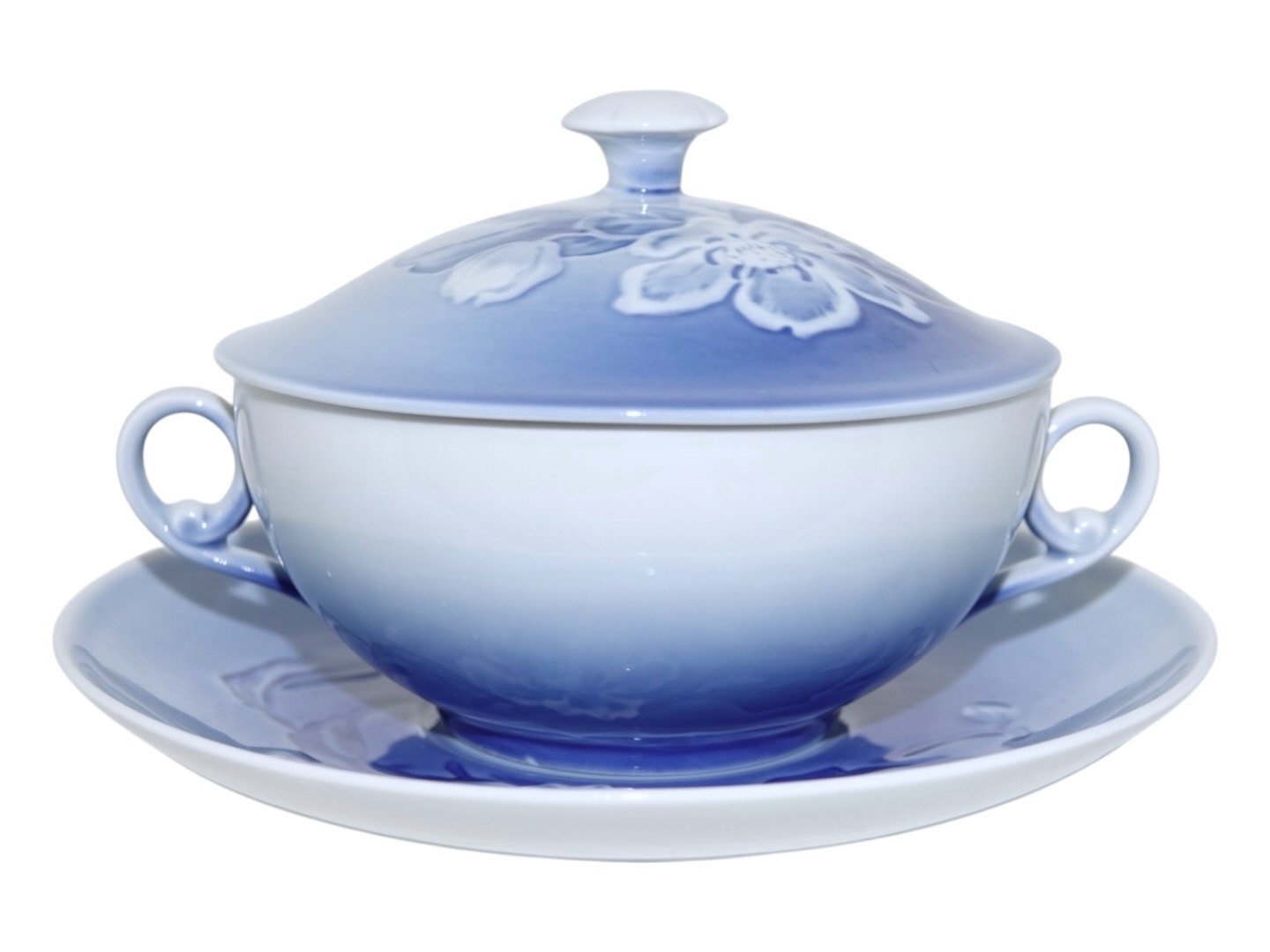 Bing & Grondahl Christmas Rose, lidded soup cup with saucer.
