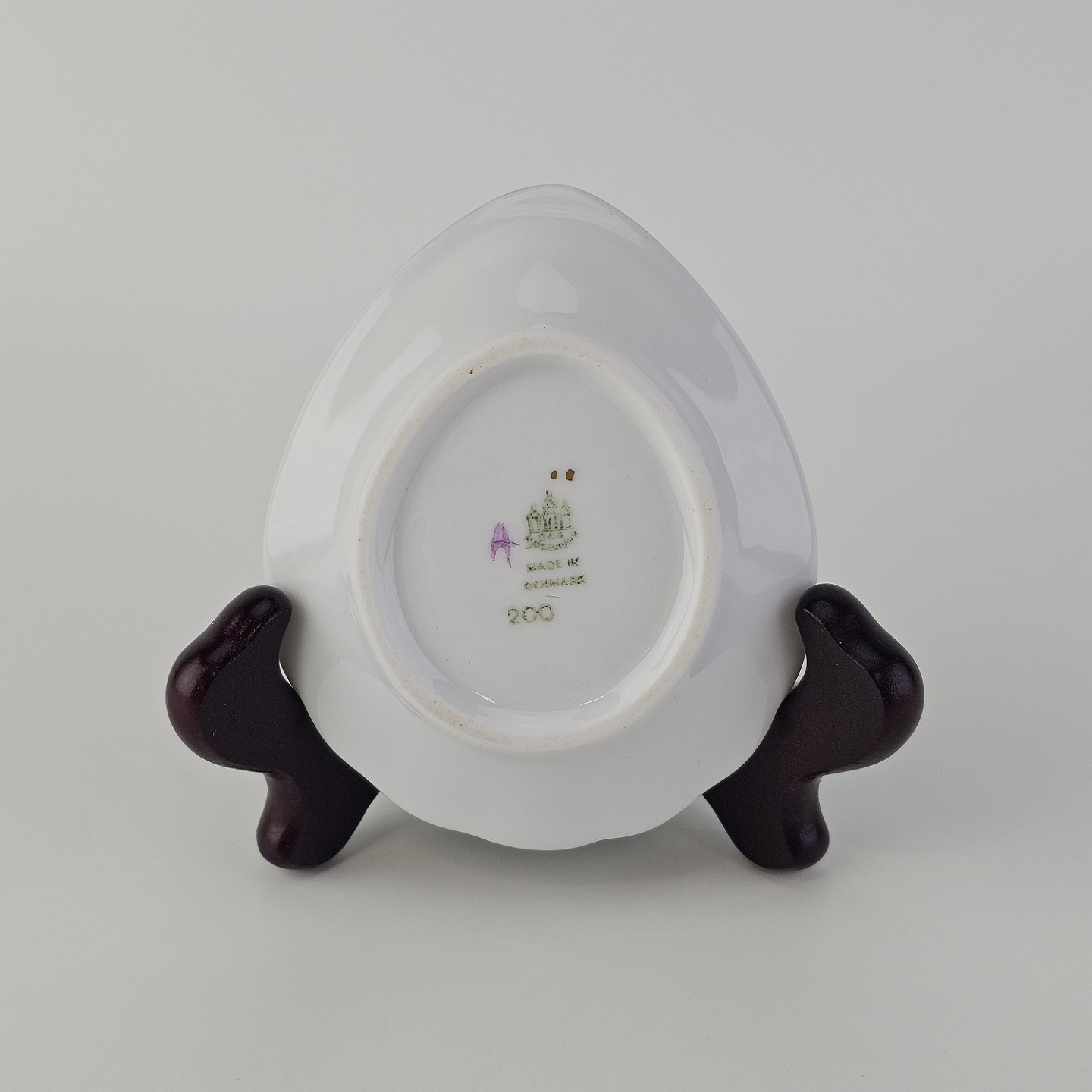 Antonius er af hvidt porcelæn med skælform dekoreret med håndmalede blå anemoner og guldkant. Også kendt under navnet Blå Anemone.