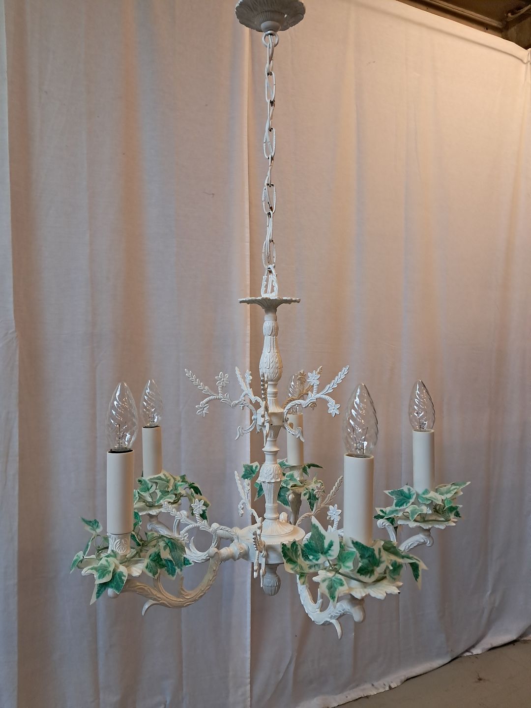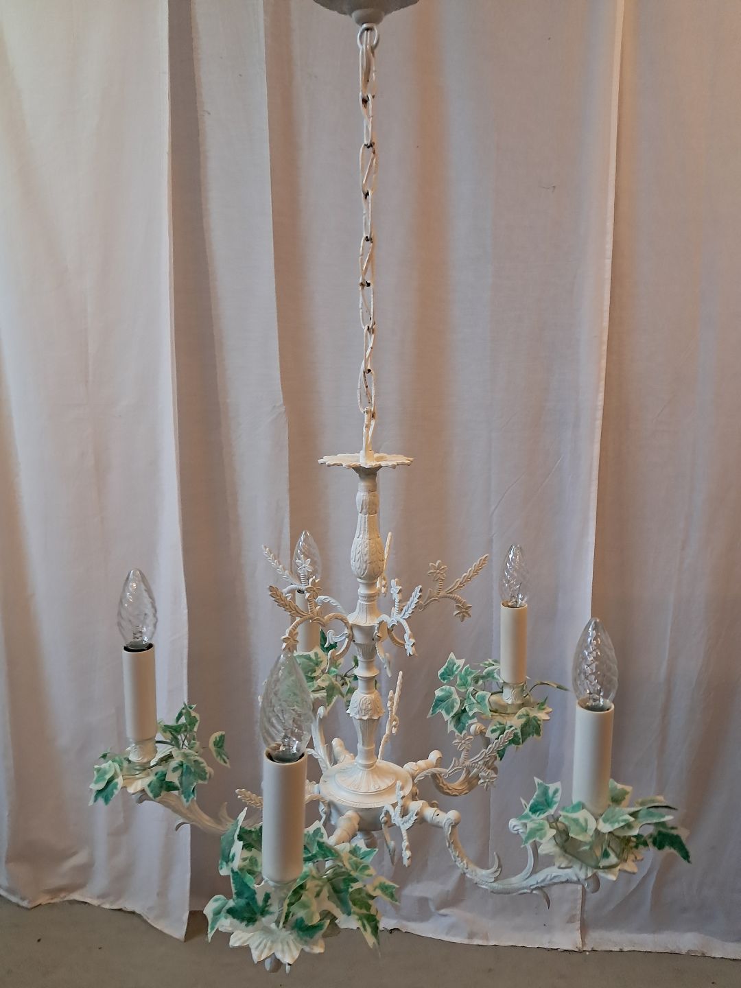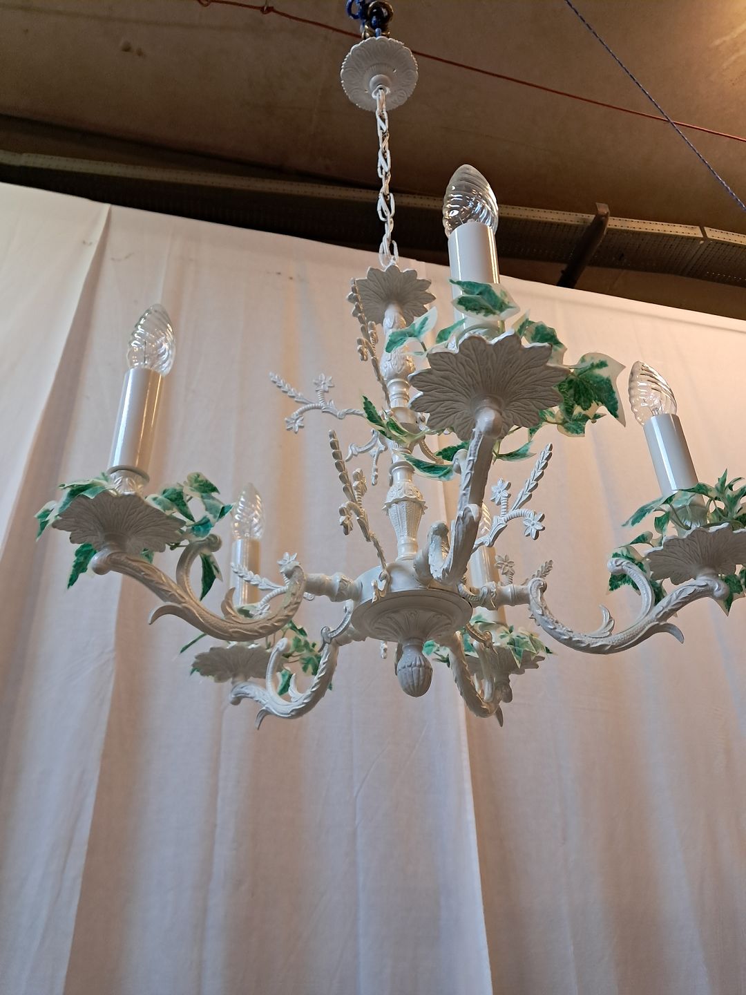 Lysekrone i malet metal, fra 1980erne.