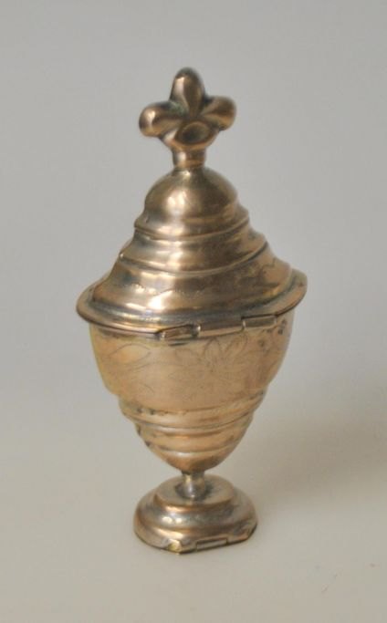 Niels Peter Falck (1779 - 1858) Holbæk, Denmark: Baroque main water egg with top and embalming chamber. Stamped in the embalming chamber. With side decorations. H.: 10.5 cm.