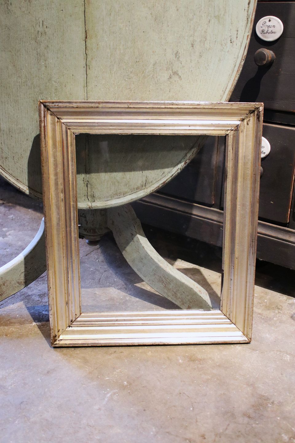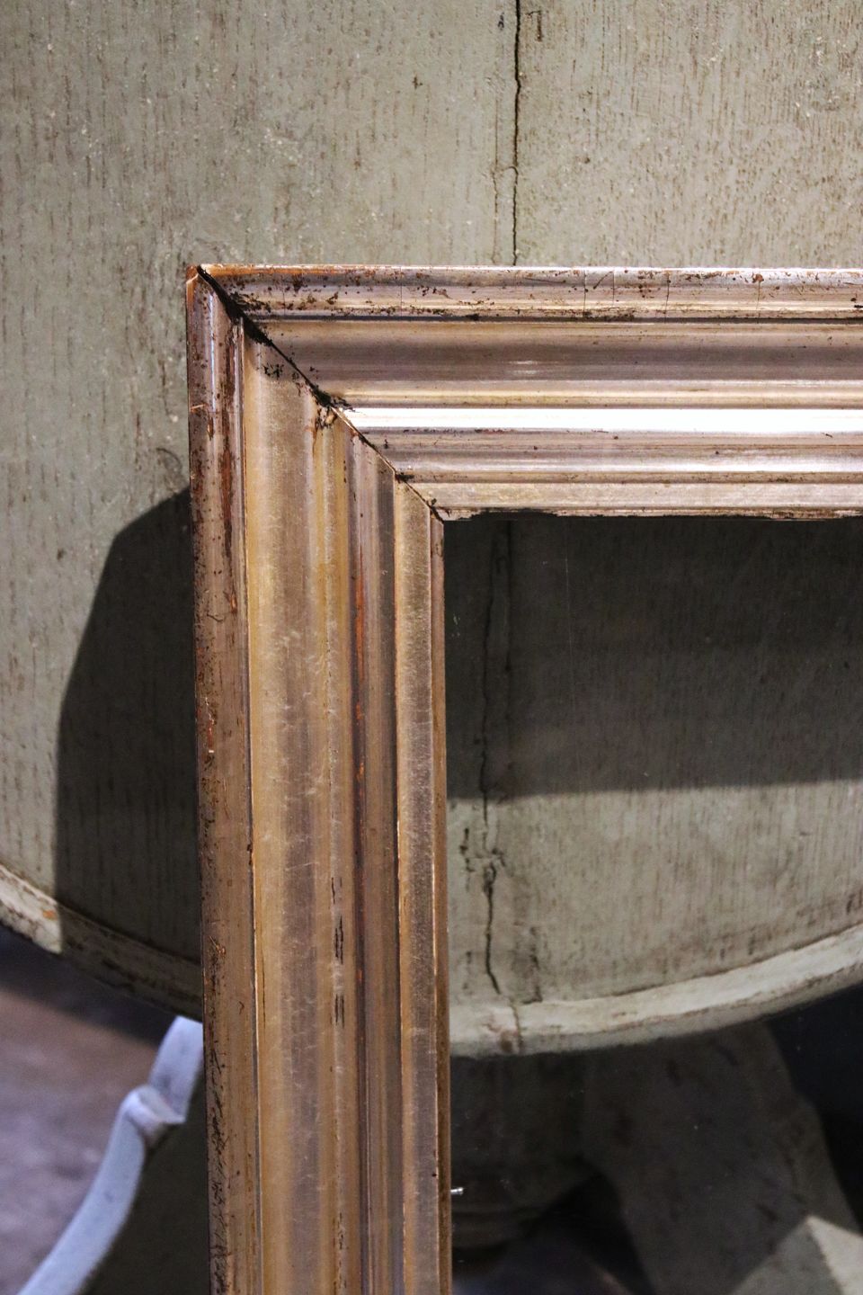 Antique 19th century wooden frame with original old silver plating