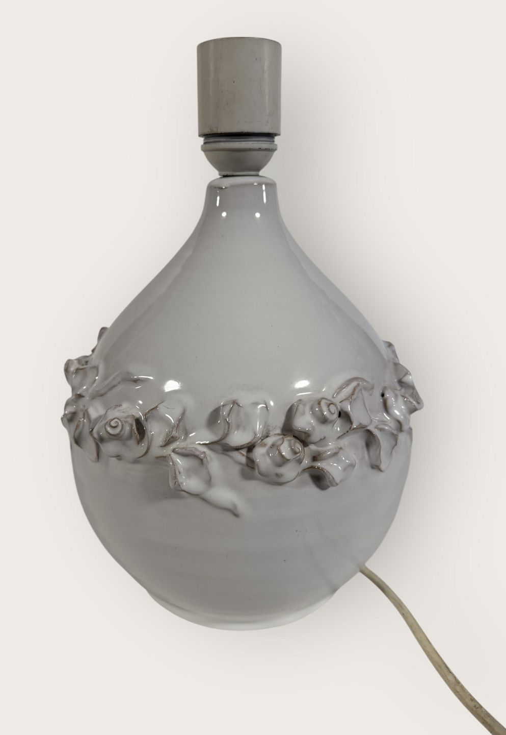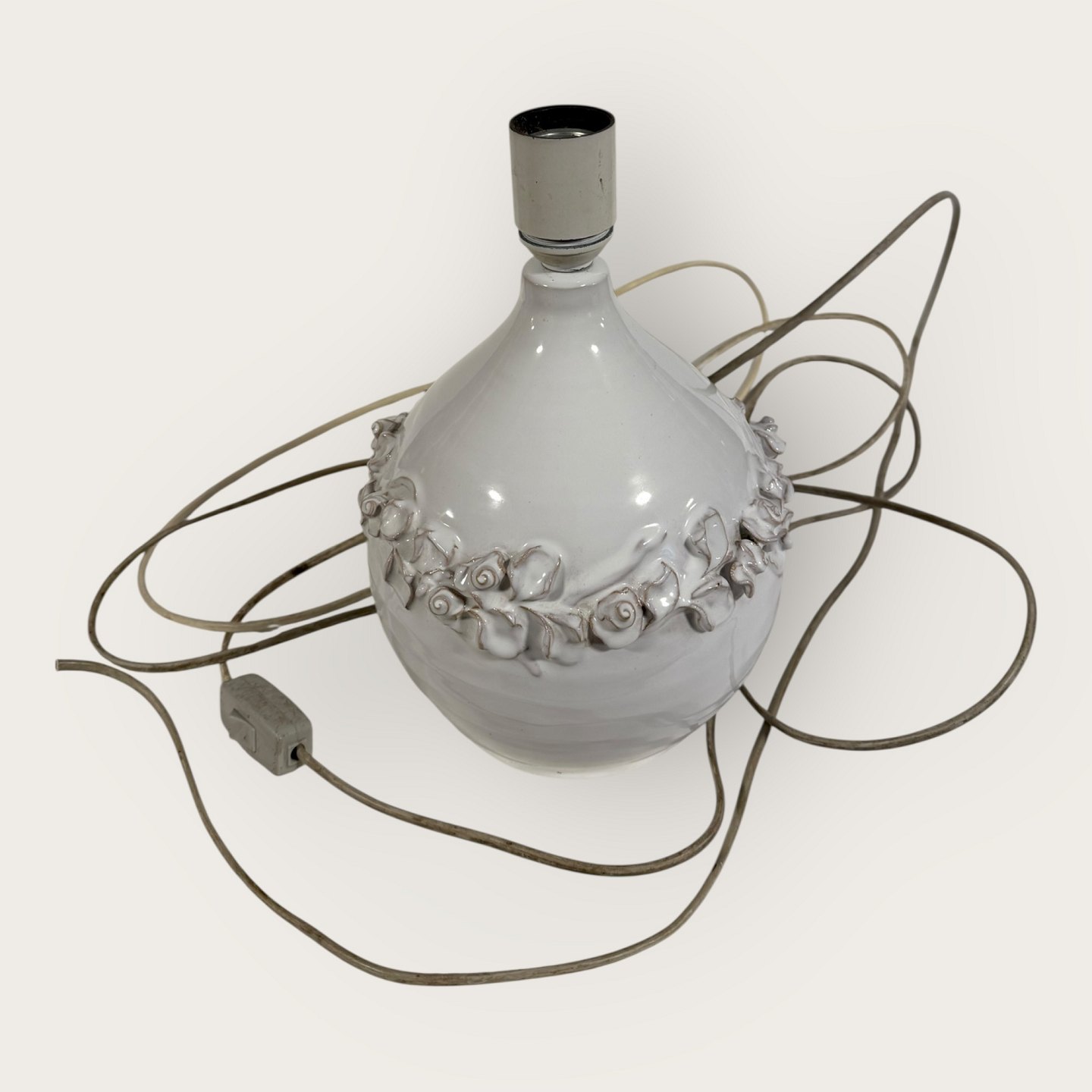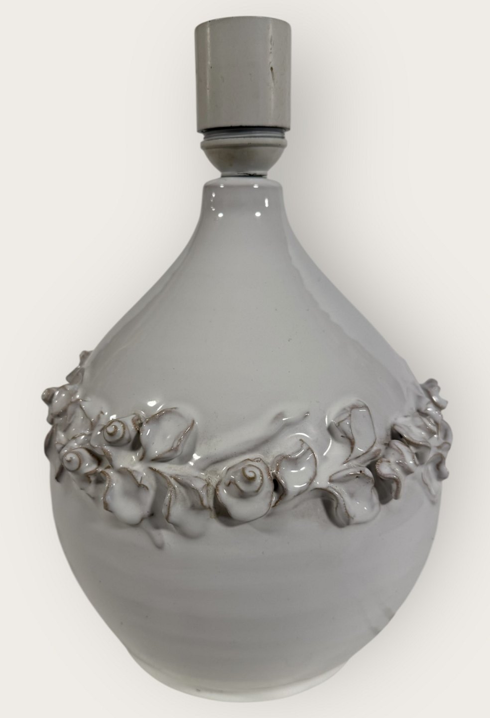 Torben Keramik, Large white table lamp with flower vine, height with socket 27.5cm, signed Torben Danmark 175 *Good condition*