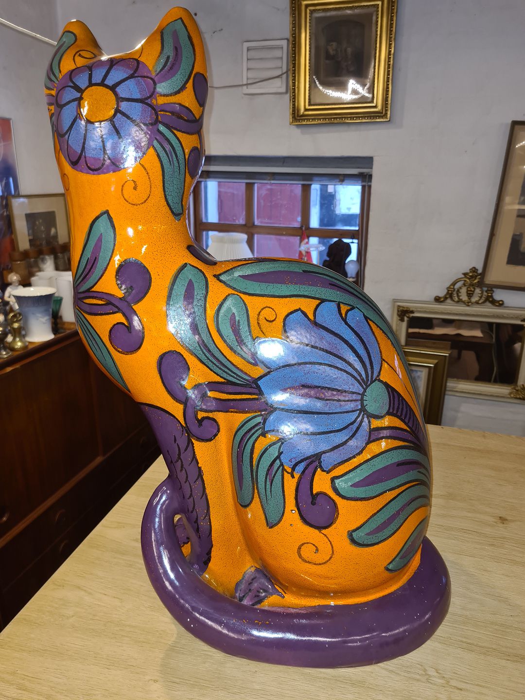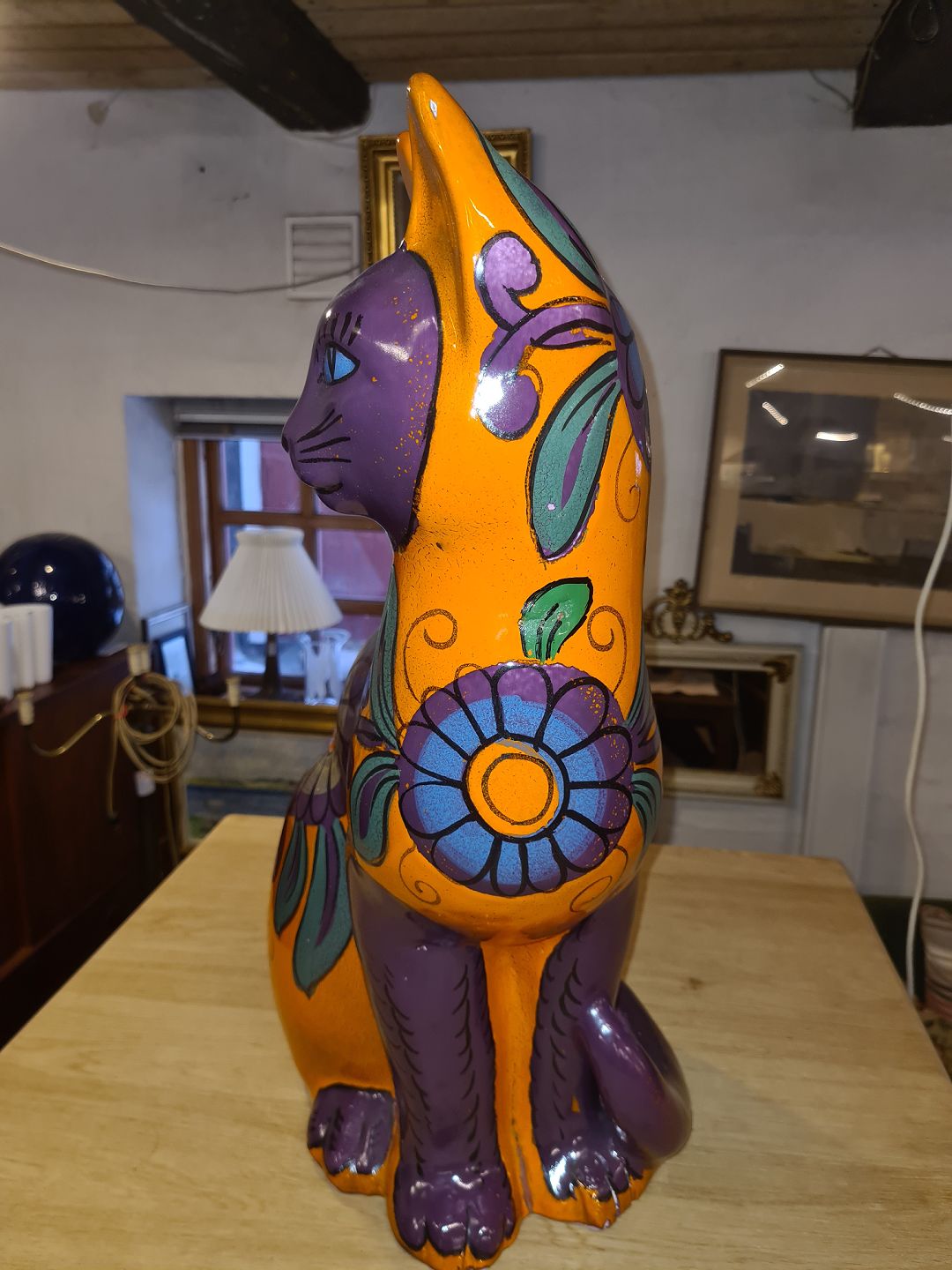 Text available in Danish: Mario Bellini figur af kat i glaseret fajance.