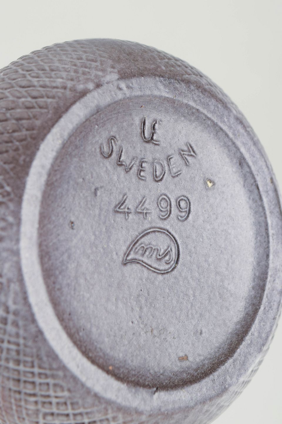 Mari Simmulson 1911–2000 was a Swedish ceramic artist and designer who worked for Upsala Ekeby from 1949. She is renowned for her distinctive decorative language, characterised by graphic relief patterns and stylised botanical motifs. Her work ranges from functional ceramics to more sculptural pieces and represents a significant contribution to Swedish ceramics of the mid-20th century.