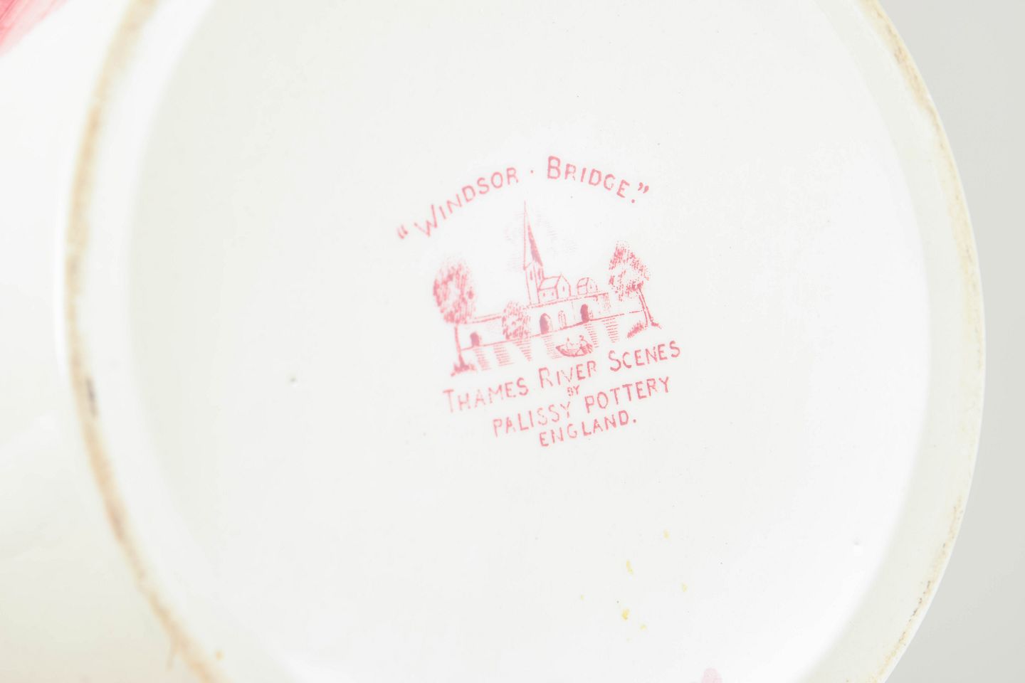 Palissy Pottery was an English manufacturer active in the first half of the 20th century, known for decorative faience with transferware decoration. The name refers to the French Renaissance potter Bernard Palissy and was used for series featuring historical and landscape scenes. Production included both tableware and decorative household items, often with distinctly English motifs. Today, Palissy Pottery is appreciated for its characteristic style and clear period expression.