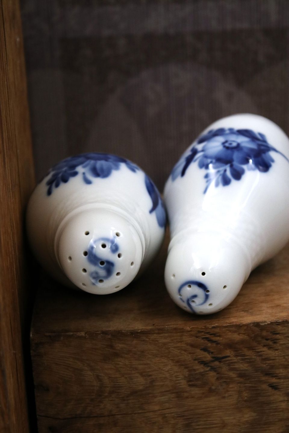 Royal Copenhagen, Blue Flower Braided salt & pepper set.