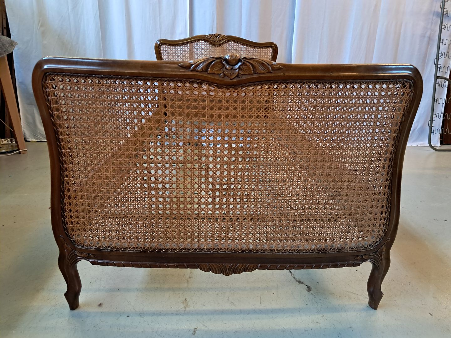 Seng i nødetræ med rørflet, fra 1950erne.
