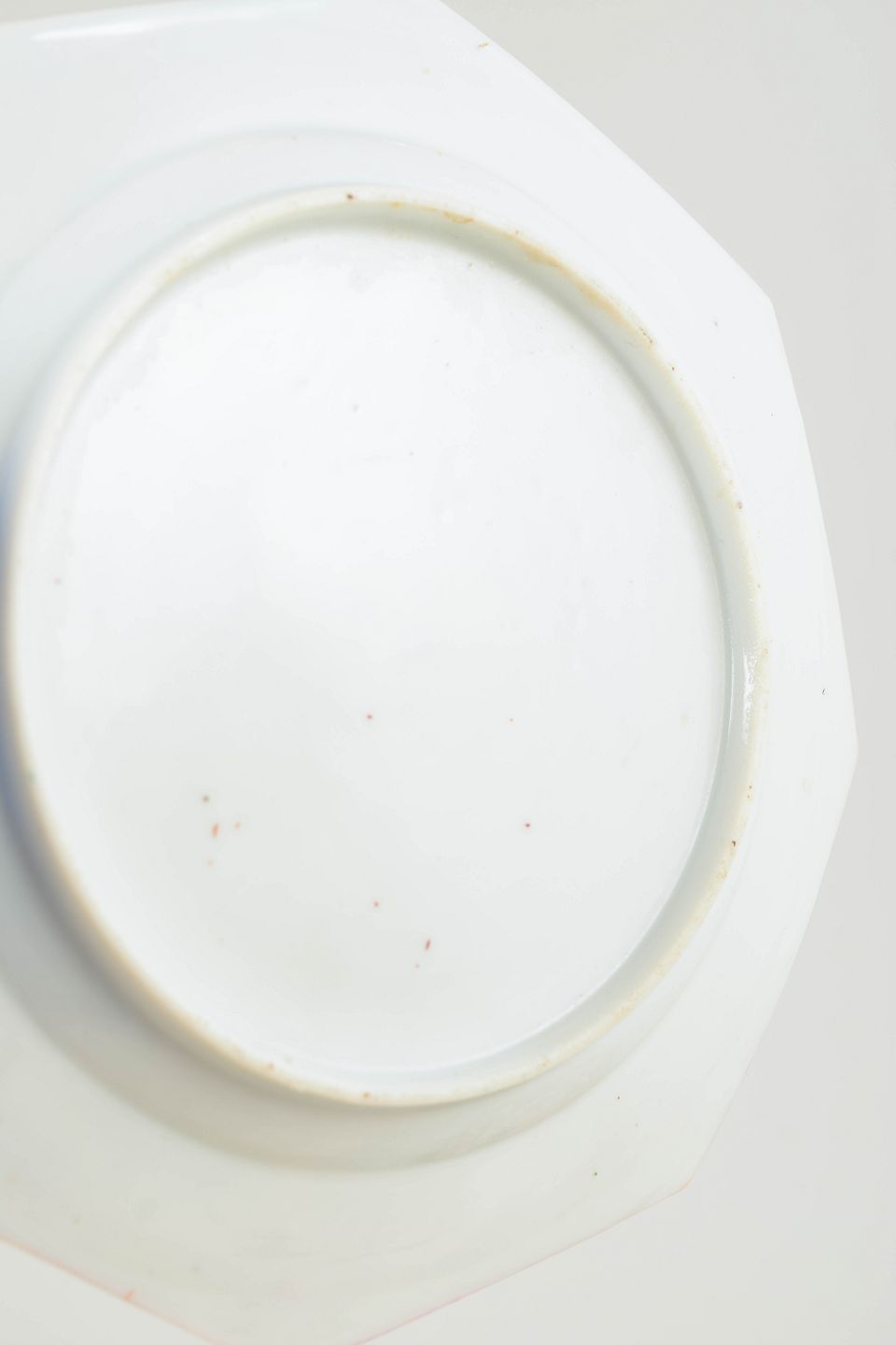 Chinese export porcelain of the 18th century was produced during the Qing dynasty, primarily in Jingdezhen, the centre of imperial and commercial porcelain manufacture. Many objects were made specifically for the European market and are characterised by a combination of traditional Chinese motifs and forms adapted to Western taste. Octagonal plates were particularly popular during the 18th century and were often decorated with symbolic figures such as dragons, which in Chinese culture represent power, strength, and good fortune.