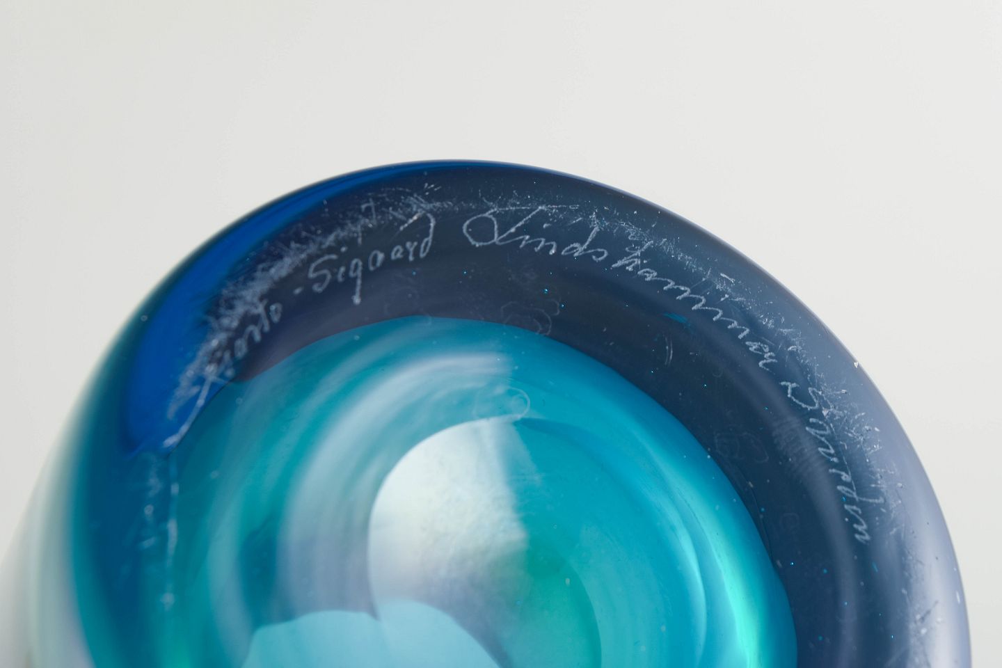 Gösta Sigvard (born 1939) is a Swedish glass artist and designer, recognised for his refined use of colour transitions and solid glass forms. He worked with Lindshammars glasbruk, a glassworks founded in 1826 that gained international recognition in the mid-20th century for high-quality modern art glass. Sigvard’s works from the 1960s demonstrate confident control of colour layering and proportion and are considered characteristic examples of Swedish glass design from this period.