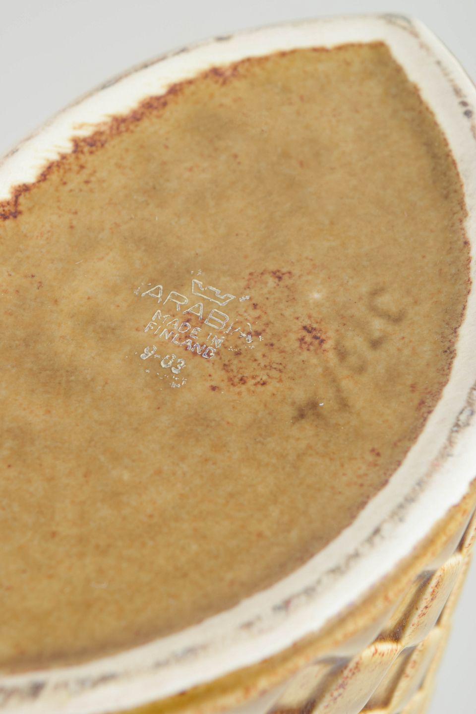Kaarina Aho (born 1925 in Helsinki, died 1990) was a Finnish ceramicist and designer. Trained in technical drawing at the Central School of Arts and Crafts in Helsinki, she joined Arabia’s product design department in 1946 as an assistant to Kaj Franck and soon expanded her role across many facets of product development, from laboratory work to glazing. Aho was instrumental in creating a range of new and expressive designs for Arabia over nearly two decades. She is best known for series such as Harlekiini and Palapeli. From 1962 she worked in her own ceramic studio producing unique utility articles in distinctive glazes.