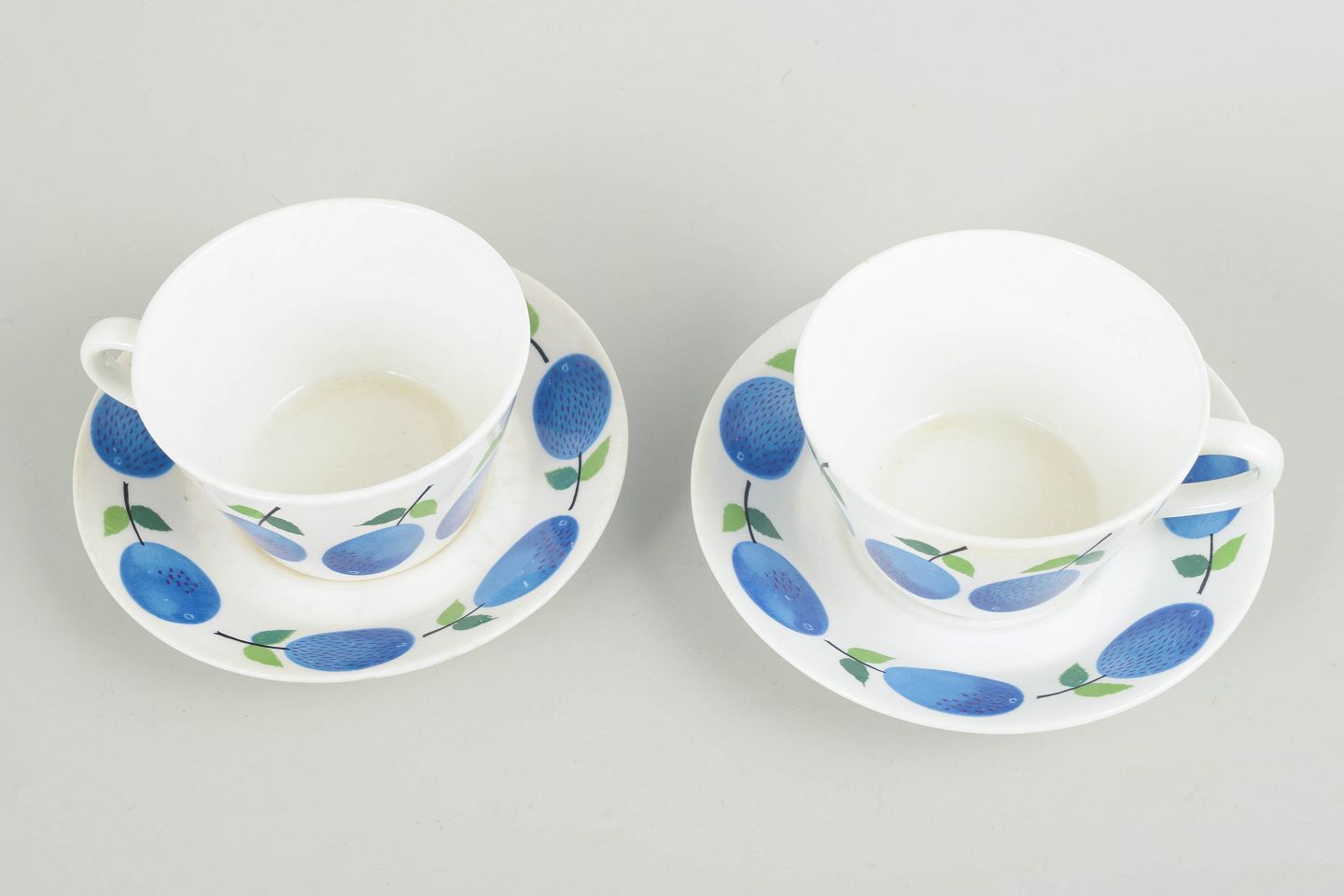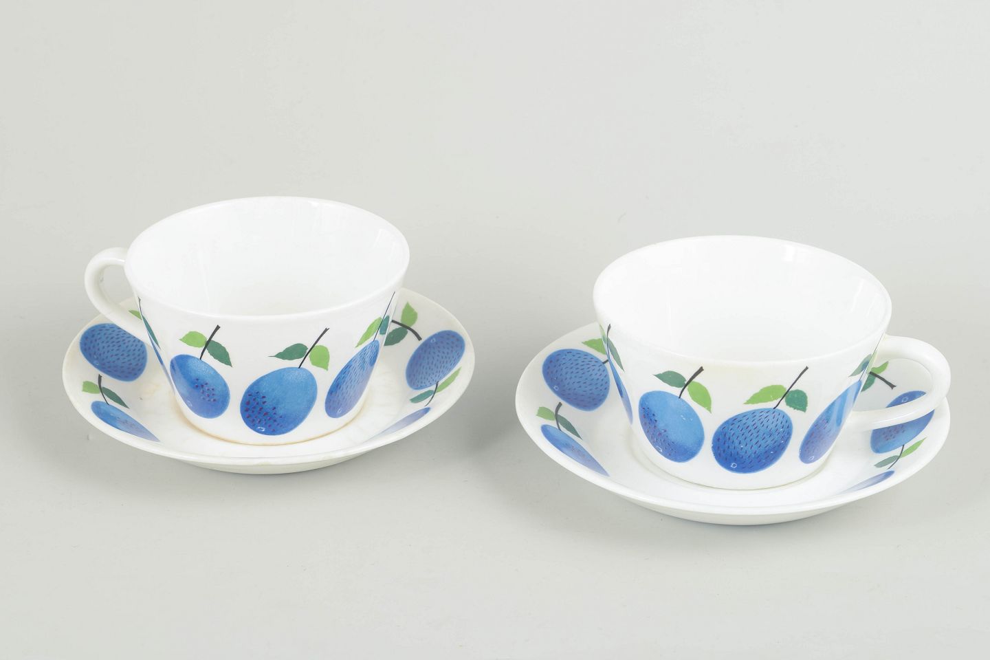 Stig Lindberg for Gustavsberg – “Prunus” teacups with matching saucers.
