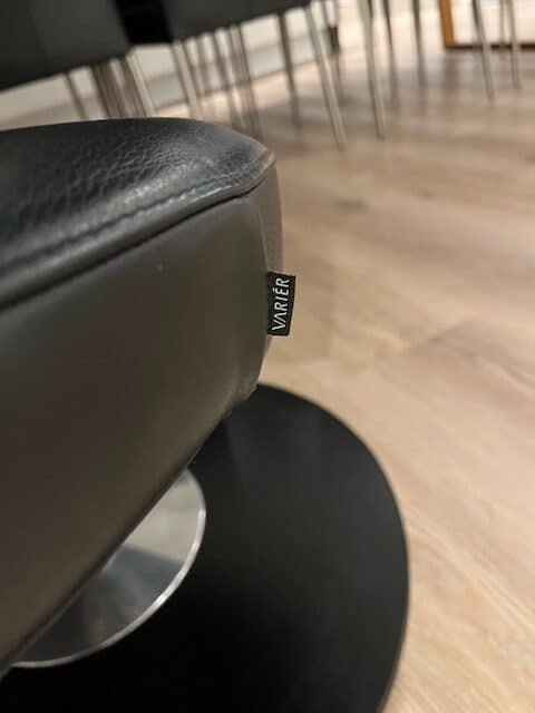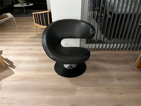 Exclusive VARIER Peel Club lounge chairVARIER Peel Club lounge chair made of black aniline leather, price group 6, with a wooden base in black lacquered ash wood.Original new price: DKK 21,999,-The Peel Club chair is designed by the renowned Norwegian brand Varier and is a more compact version of the Varier Peel lounge chairs. The model combines an elegant expression with high functionality and comfort.This chair is made with an opening to the right and a black lacquered ash wood base. It comes from a smoke- and pet-free home and has only been used as a decorative chair, which is why it appears in very well-maintained condition. Peel Club is known for its active seating concept, which provides optimal support and the possibility of many different sitting positions, ensuring both comfort and variety. Dimensions: Height: 78 cm Width: 82 cm Depth: 77 cm Seat height: 42 cm