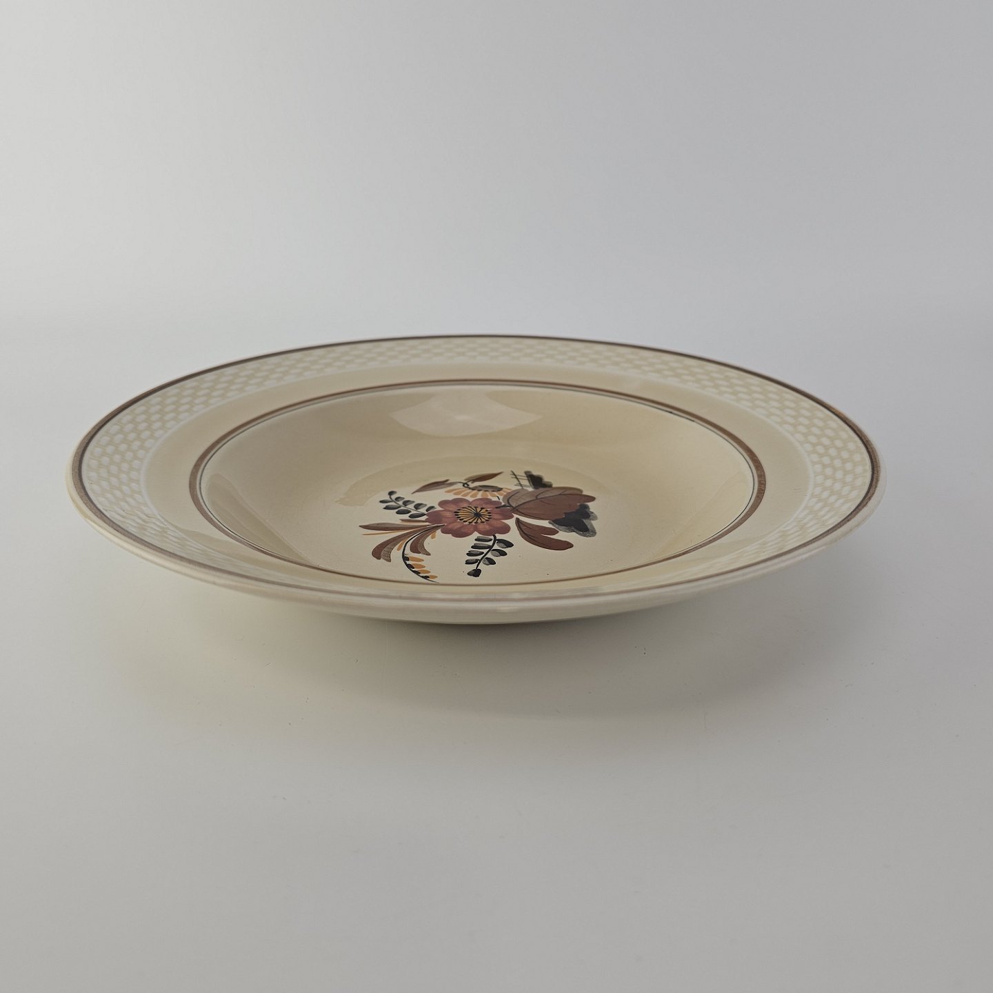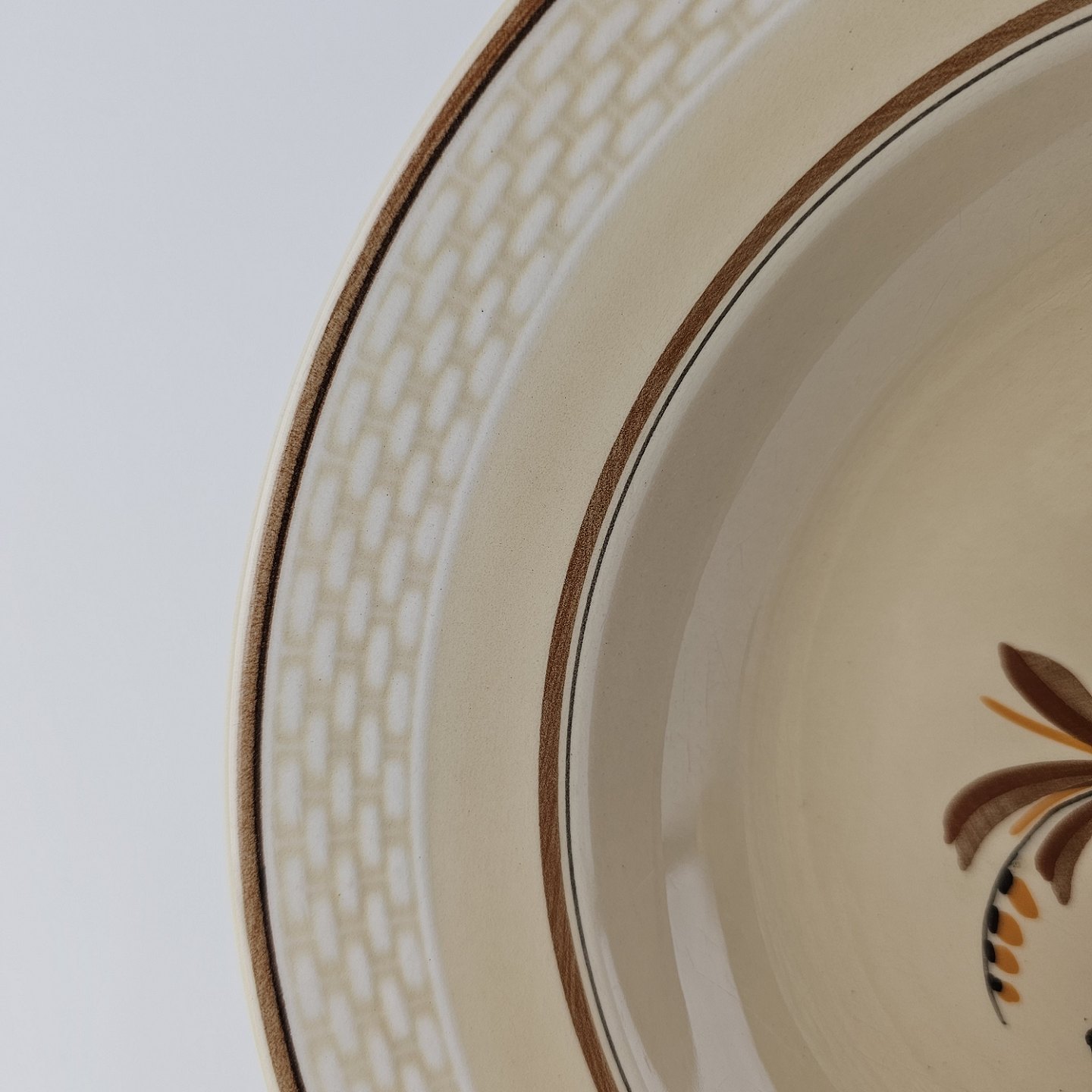 Knud er cremefarvet fajance dekoreret med flettet kant og brune og orange blomster. Stellet blev produceret i år 1934-1963.