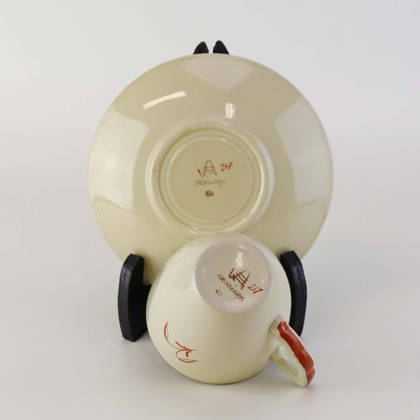 Kaffekop med underkop i fajance fra stellet Mariager. Nr. 257