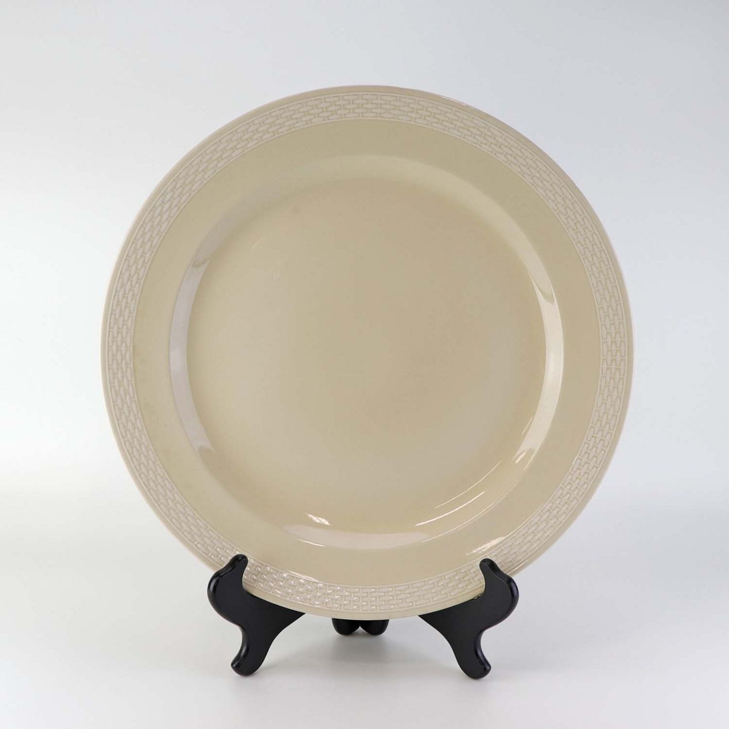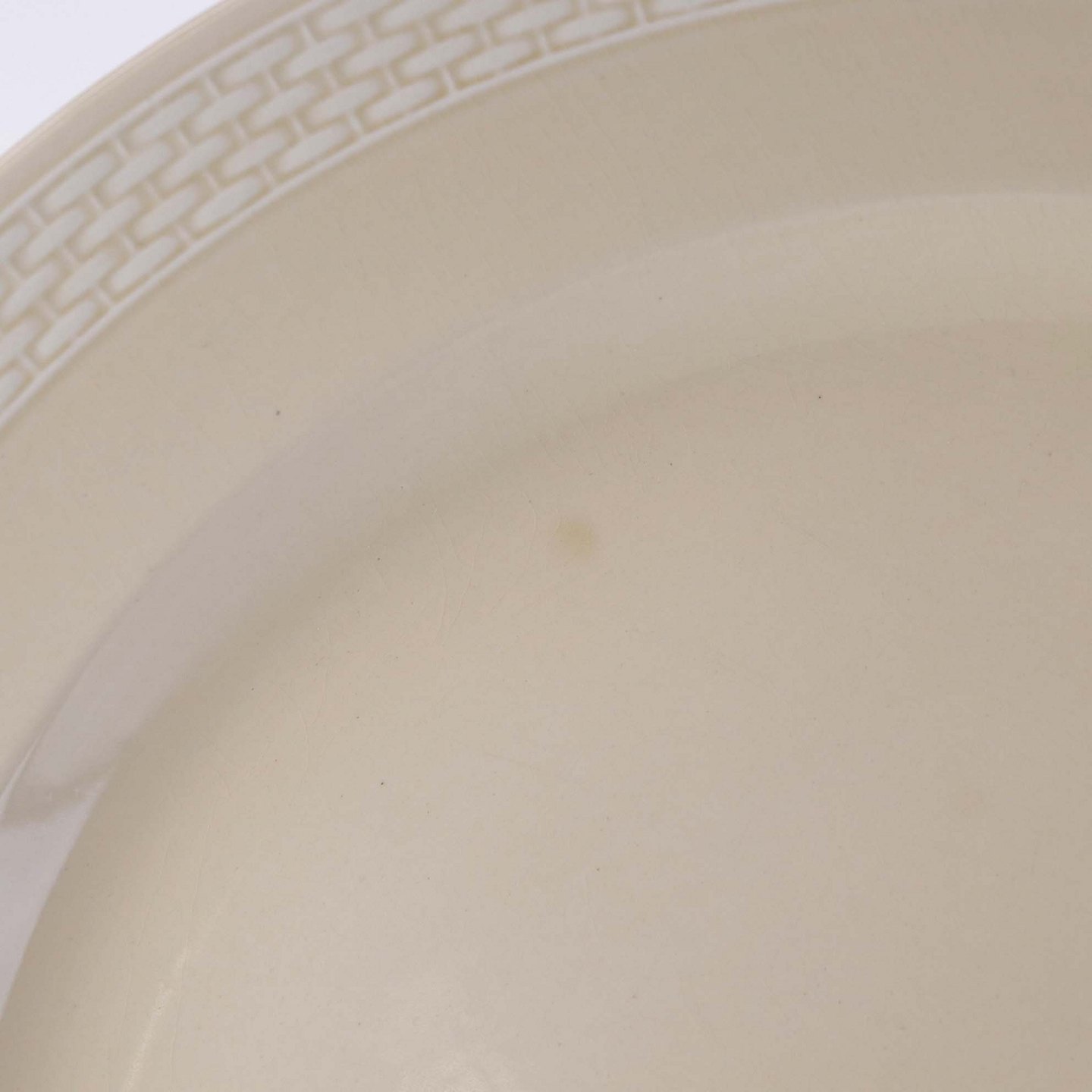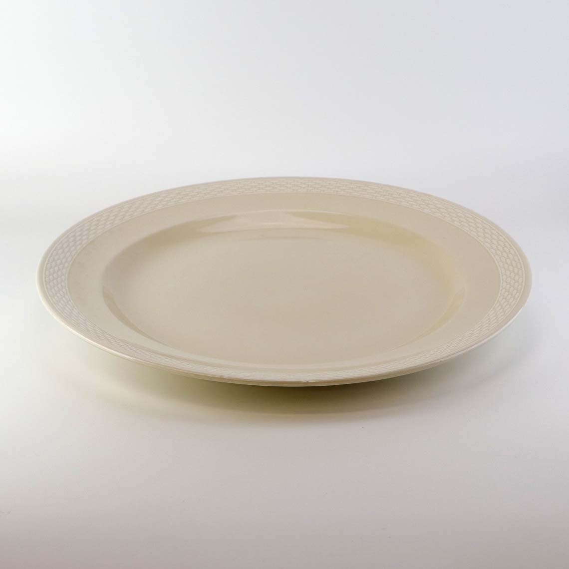 Sandfarvet fajancestel i stelform Viktoria II - Fletværk med dekoration af hvidt flet på gullig baggrund.