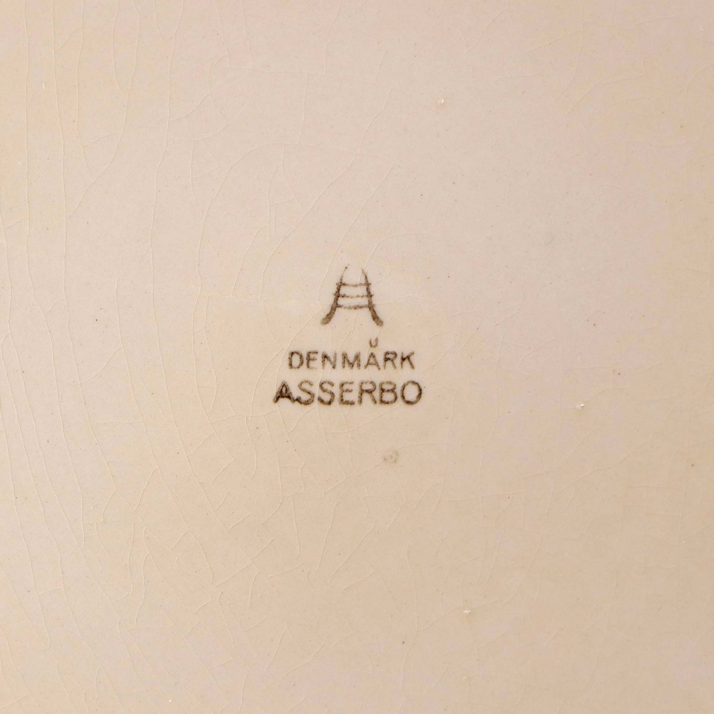 Stort rundt serveringsfad i fajance fra stellet Asserbo fremstillet i perioden 1933-1965