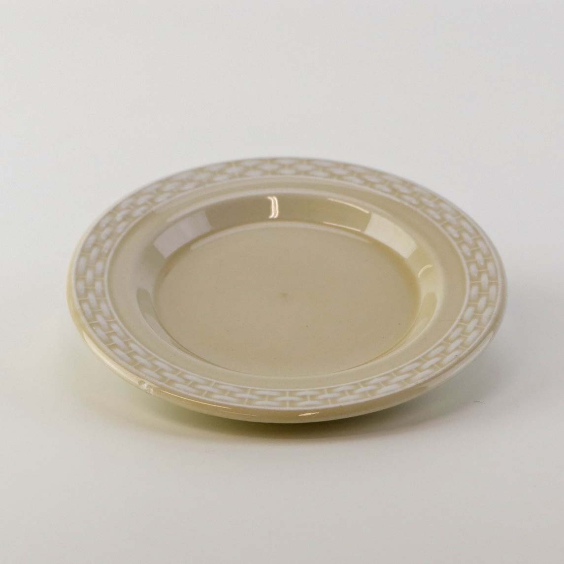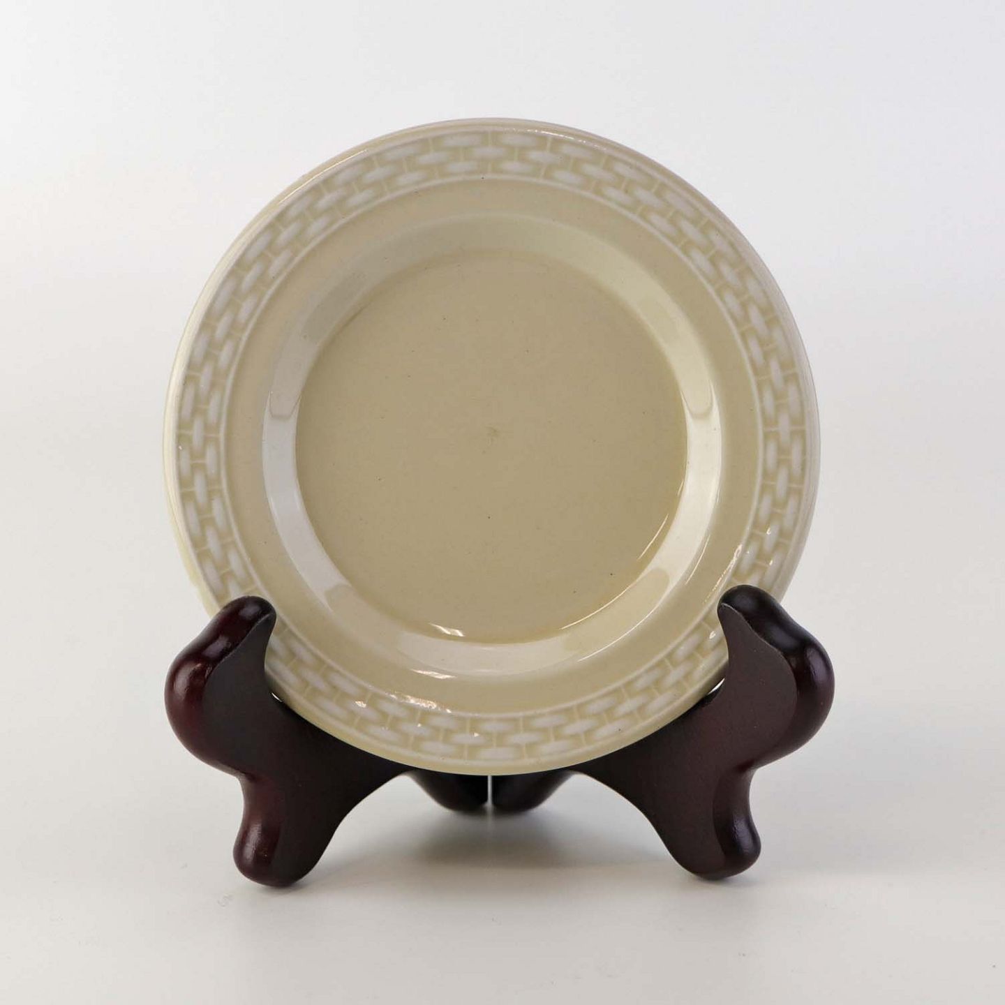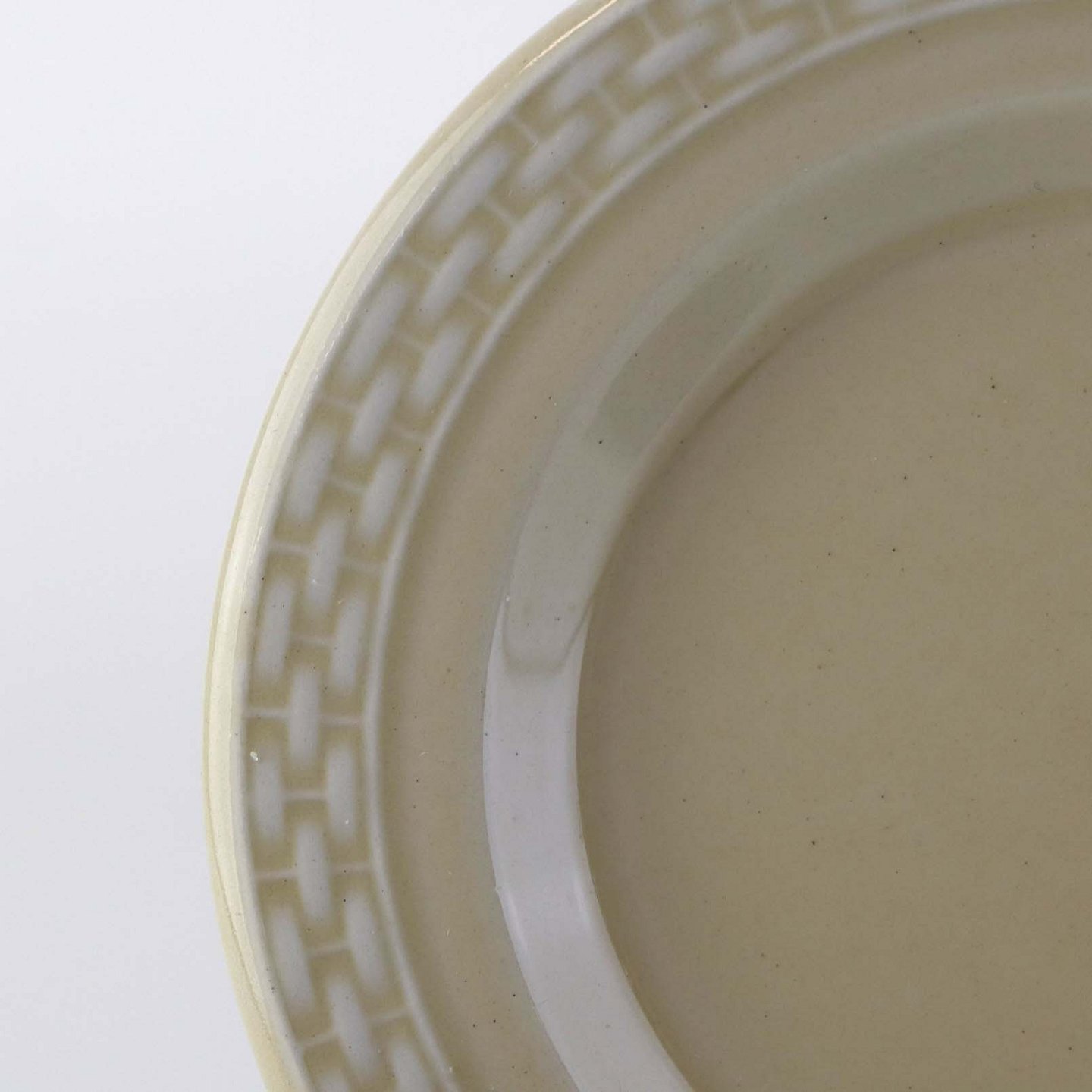 Sandfarvet fajancestel i stelform Viktoria II - Fletværk med dekoration af hvidt flet på gullig baggrund.