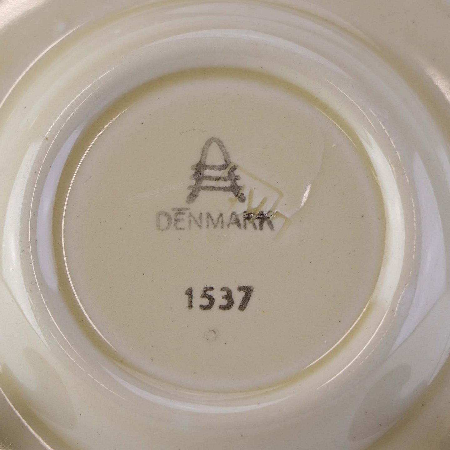 Rund kuvertasiet i fajance fra stellet Asserbo fremstillet i perioden 1933-1965. Nr. 1537