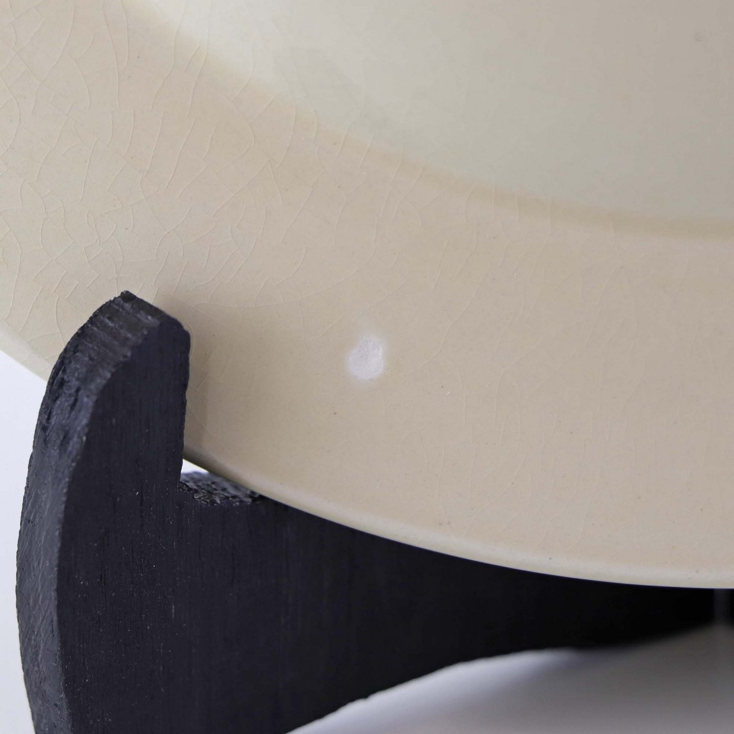 Fremstår med krakkeleringer og ujævnheder i glasuren.