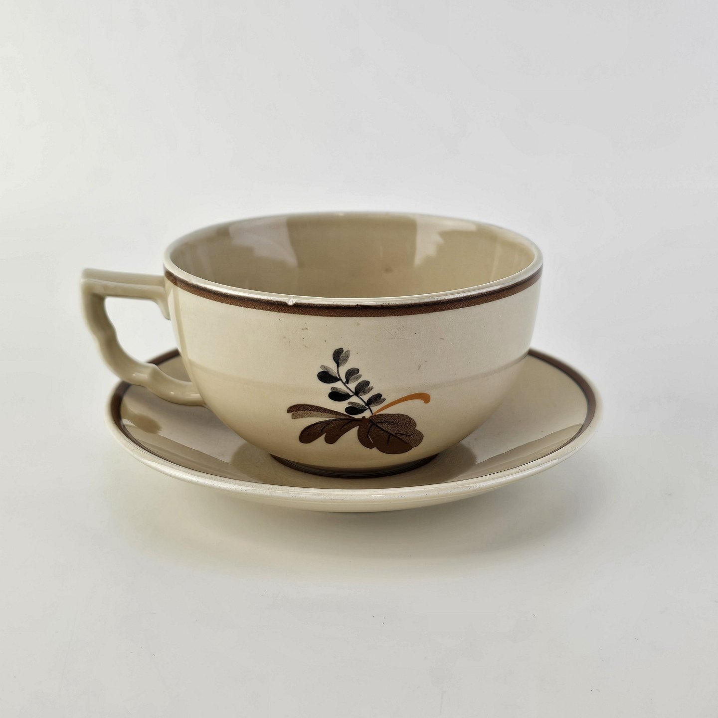 Kop med underkop i fajance fra stellet Knud